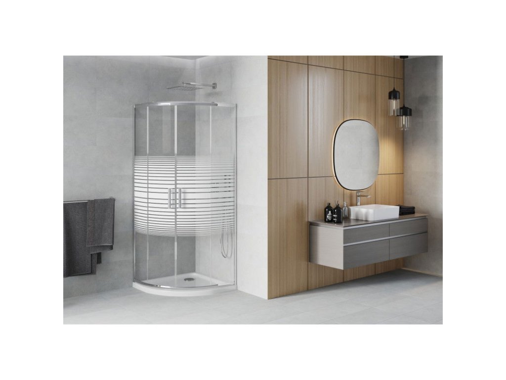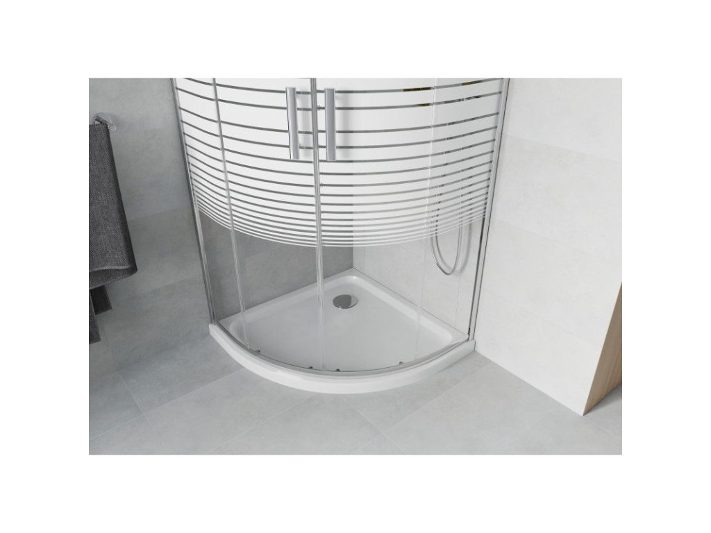 Mexen Rio sprchový kút štvrťkruhový 80 x 80 cm, pásy, profil chróm + sprchová vanička Flat, biela - 863-080-080-01-20-4110