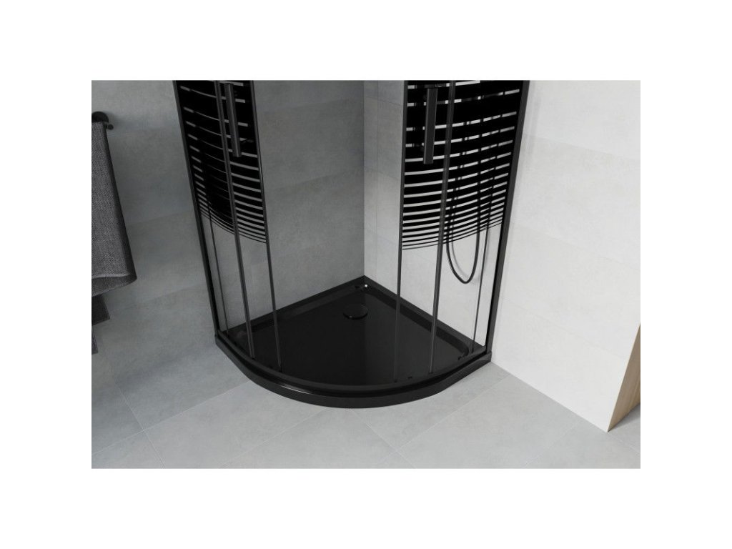Mexen Rio sprchový kút štvrťkruhový 80 x 80 cm, pásy, profil čierny + sprchová vanička Flat, čierna - 863-080-080-70-20-4170B