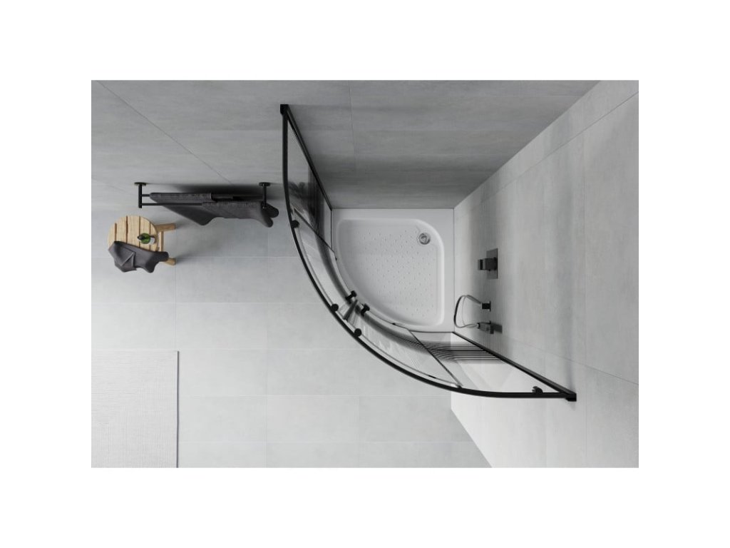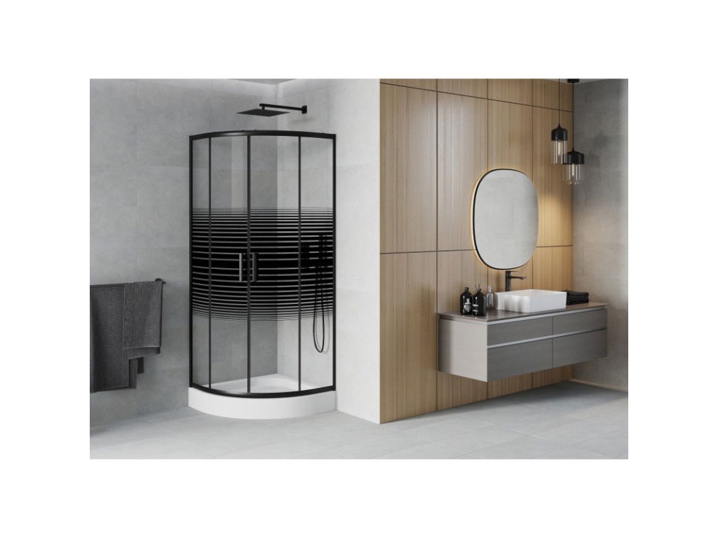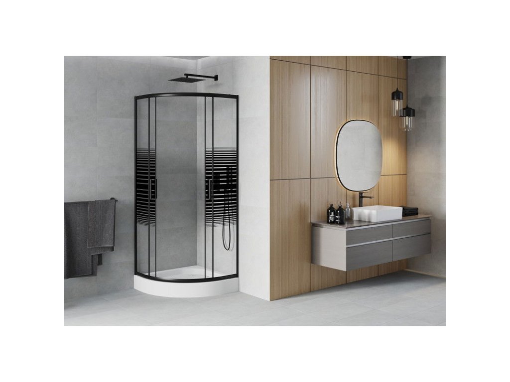 Mexen Rio sprchový kút štvrťkruhový 80 x 80 cm, pásy, profil čierny + sprchová vanička Rio, biela - 863-080-080-70-20-4710