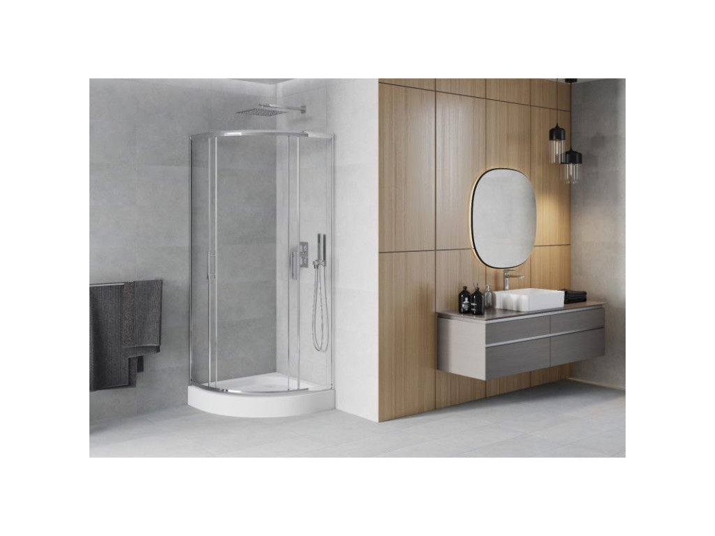 Mexen Rio sprchový kút štvrťkruhový 80 x 80 cm, priehľadné sklo, profil chróm + sprchová vanička Rio, biela - 863-080-080-01-00-4710