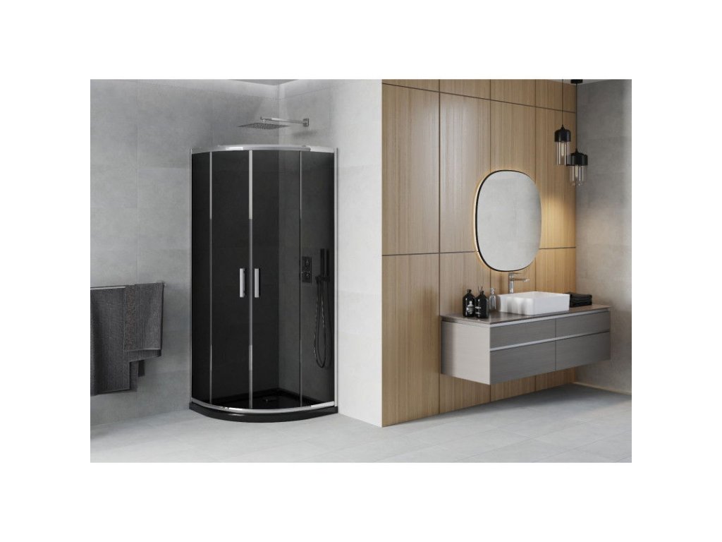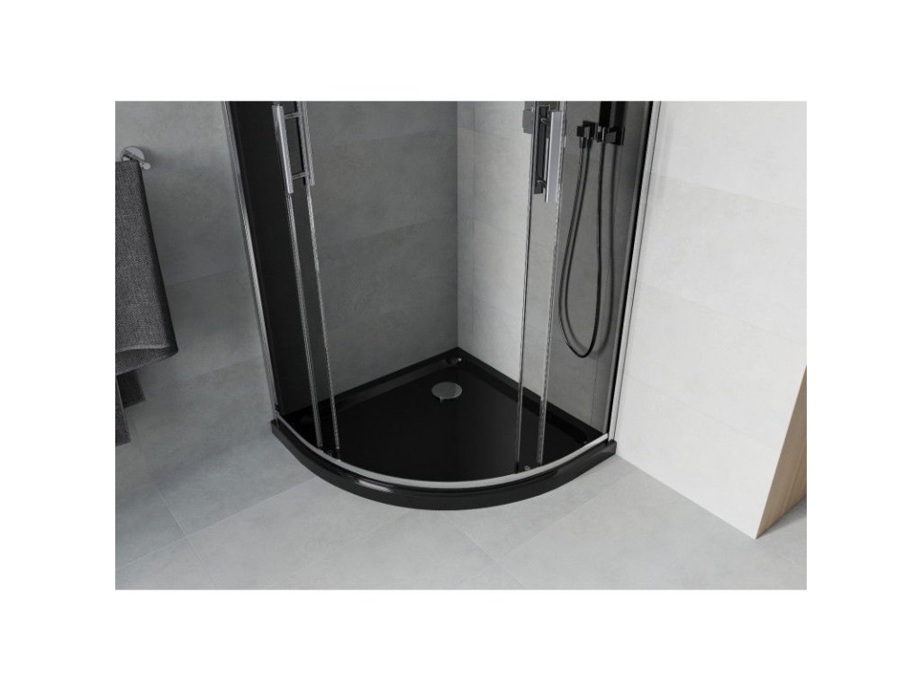 Mexen Rio sprchový kút štvrťkruhový 80 x 80 cm, šedé sklo, profil chróm + sprchová vanička Flat, čierna - 863-080-080-01-40-4170