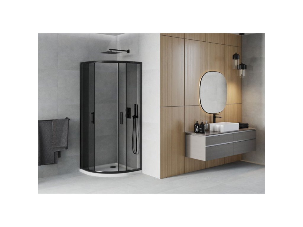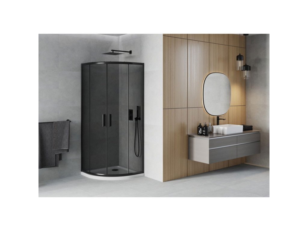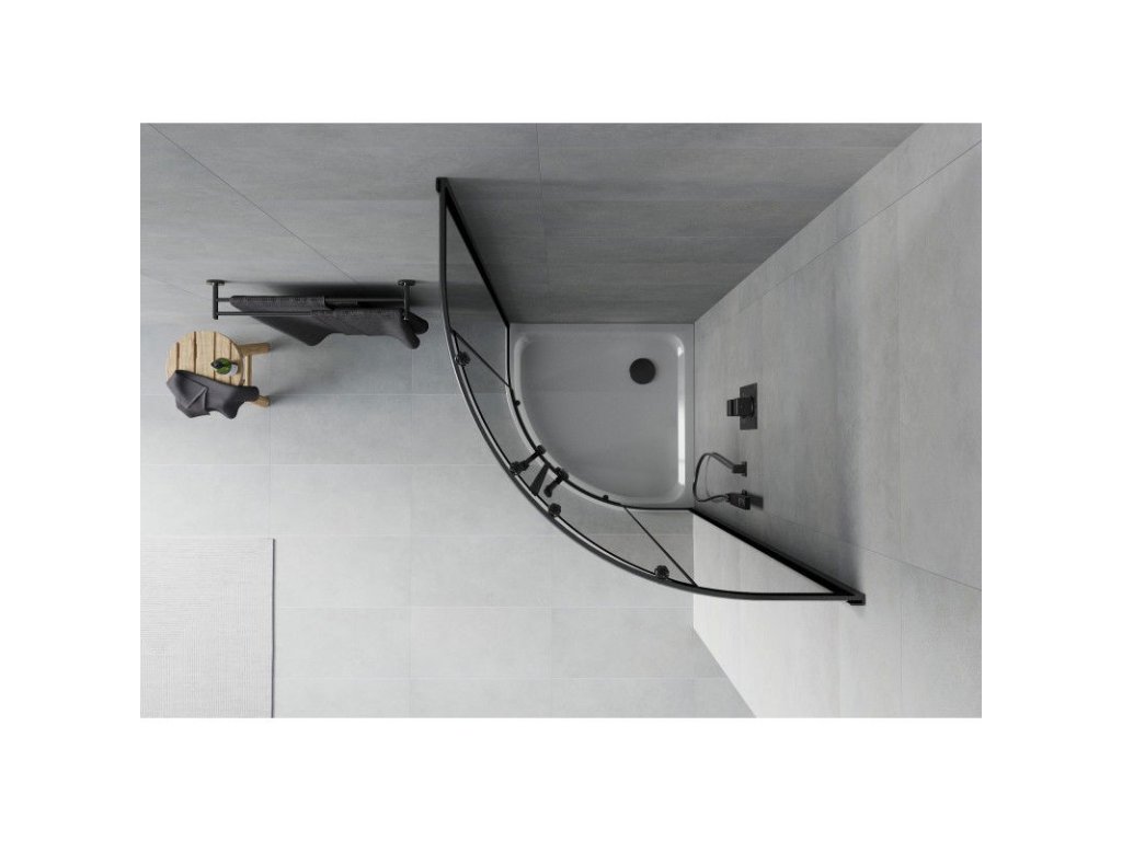Mexen Rio sprchový kút štvrťkruhový 80 x 80 cm, šedé sklo, profil čierny + sprchová vanička Flat, biela - 863-080-080-70-40-4110B