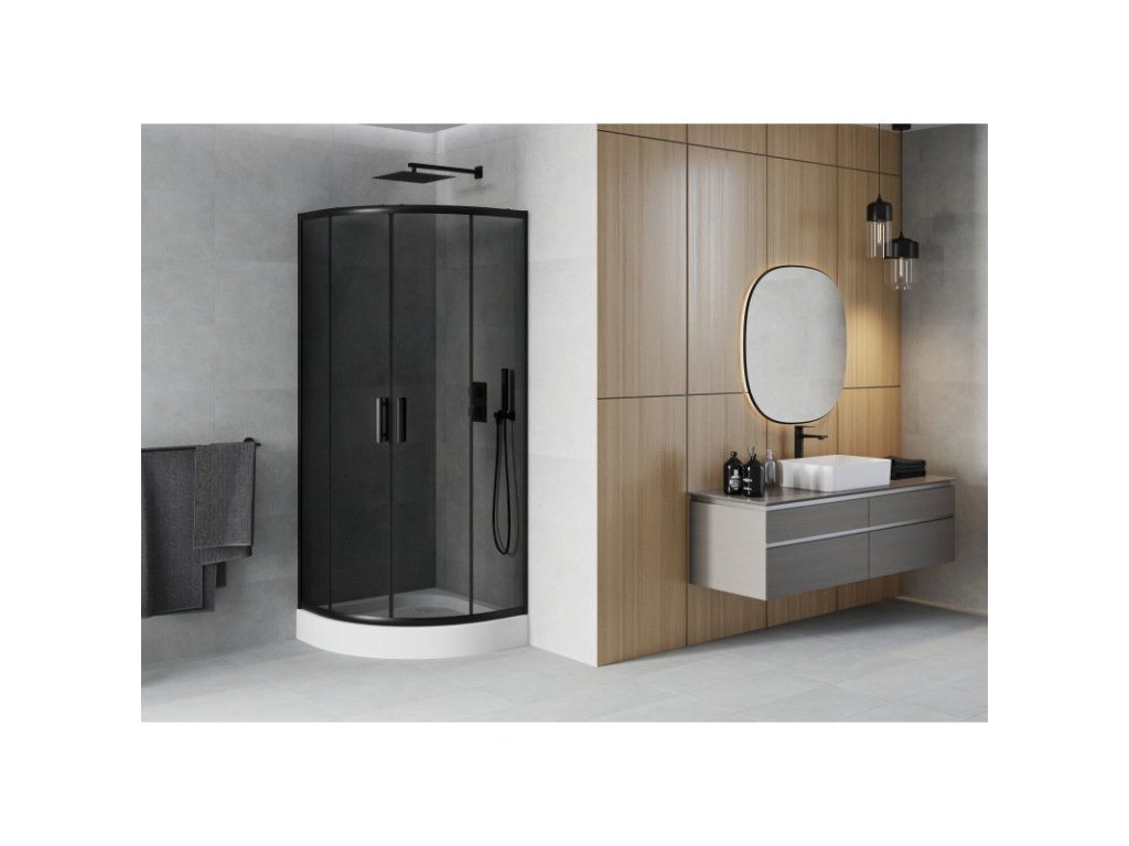 Mexen Rio sprchový kút štvrťkruhový 80 x 80 cm, šedé sklo, profil čierny + sprchová vanička Rio, biela - 863-080-080-70-40-4710
