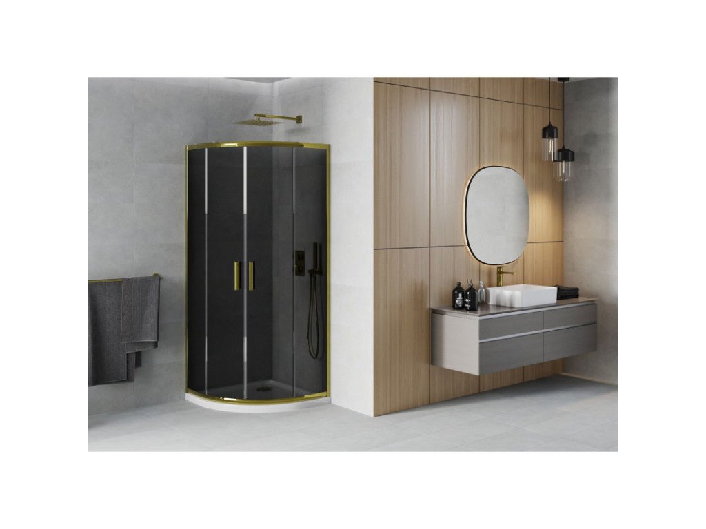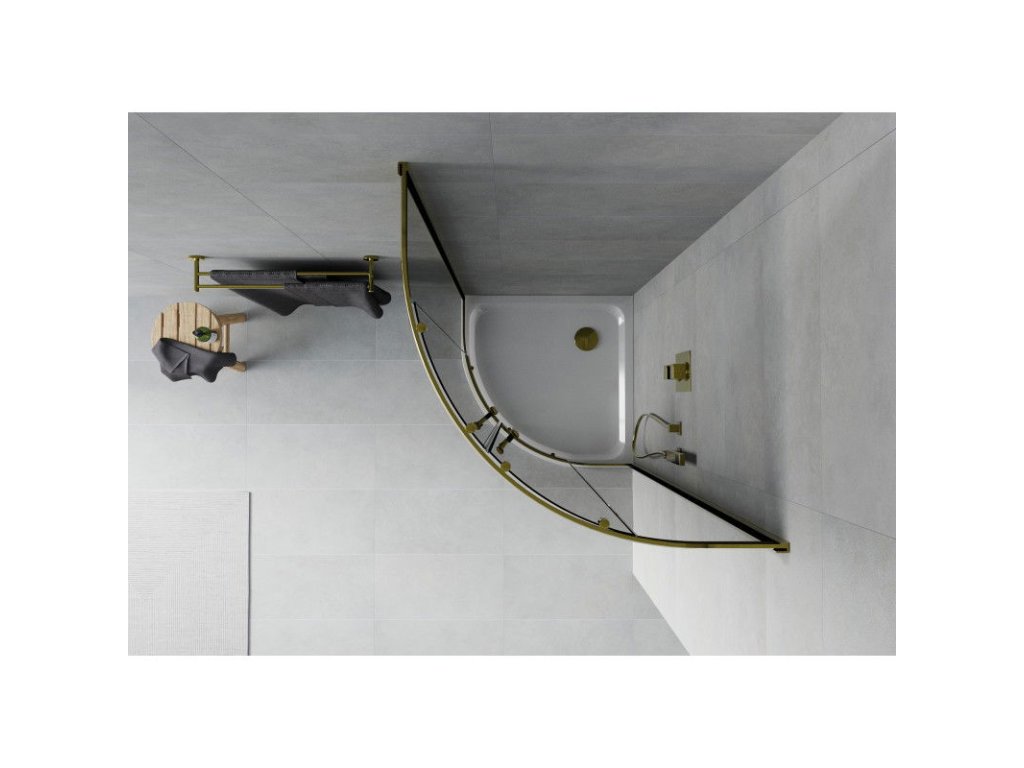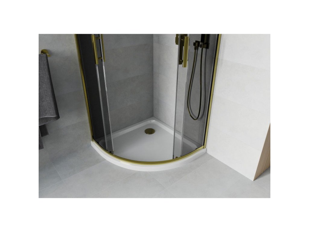 Mexen Rio sprchový kút štvrťkruhový 80 x 80 cm, šedé sklo, profil zlatý + sprchová vanička Flat, biela - 863-080-080-50-40-4110G