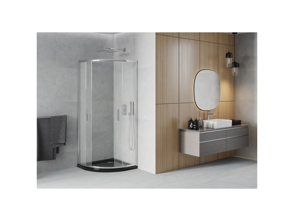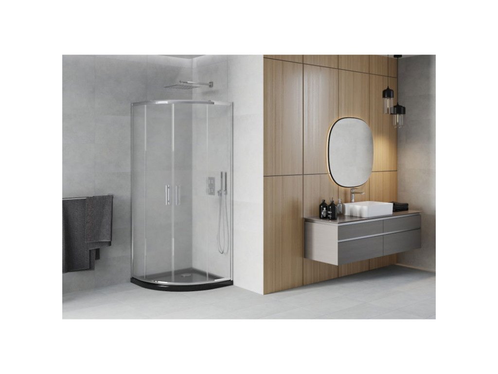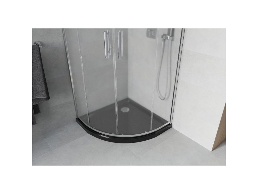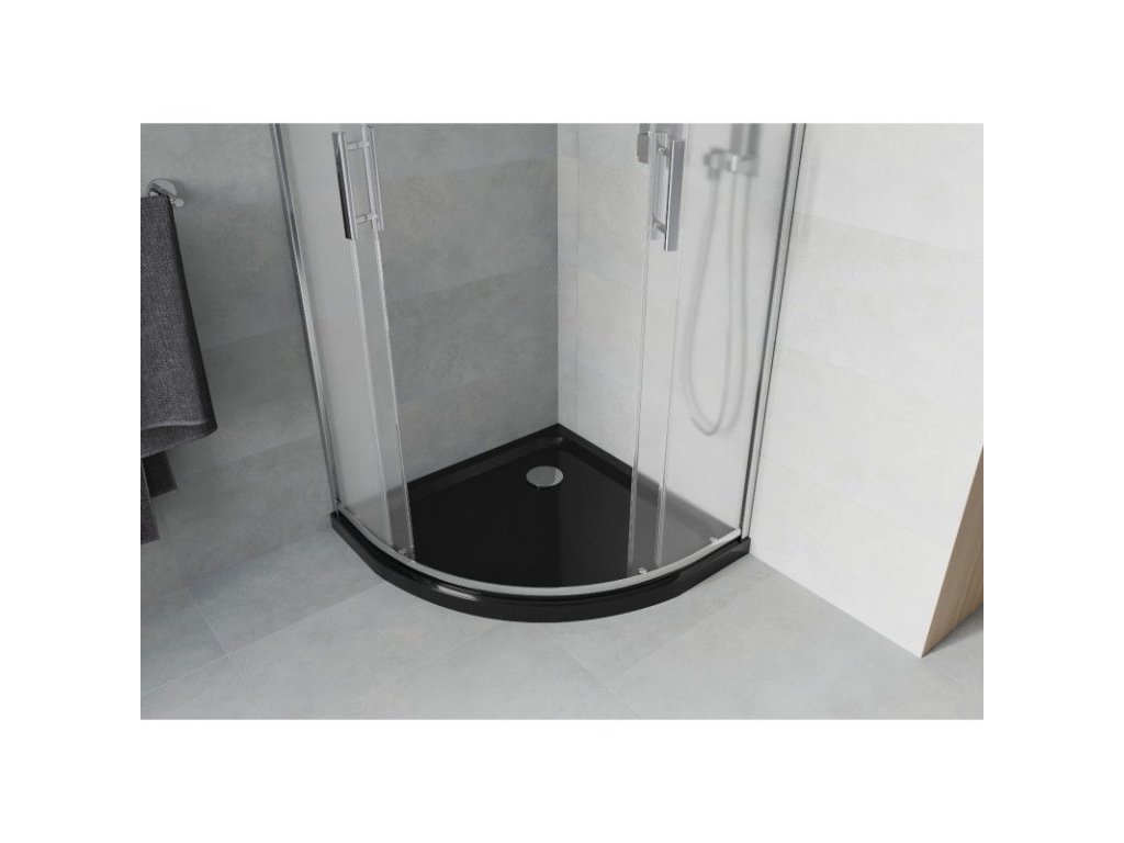Mexen Rio sprchový kút štvrťkruhový 90 x 90 cm, námraza, profil chróm + sprchová vanička Flat, čierna - 863-090-090-01-30-4170