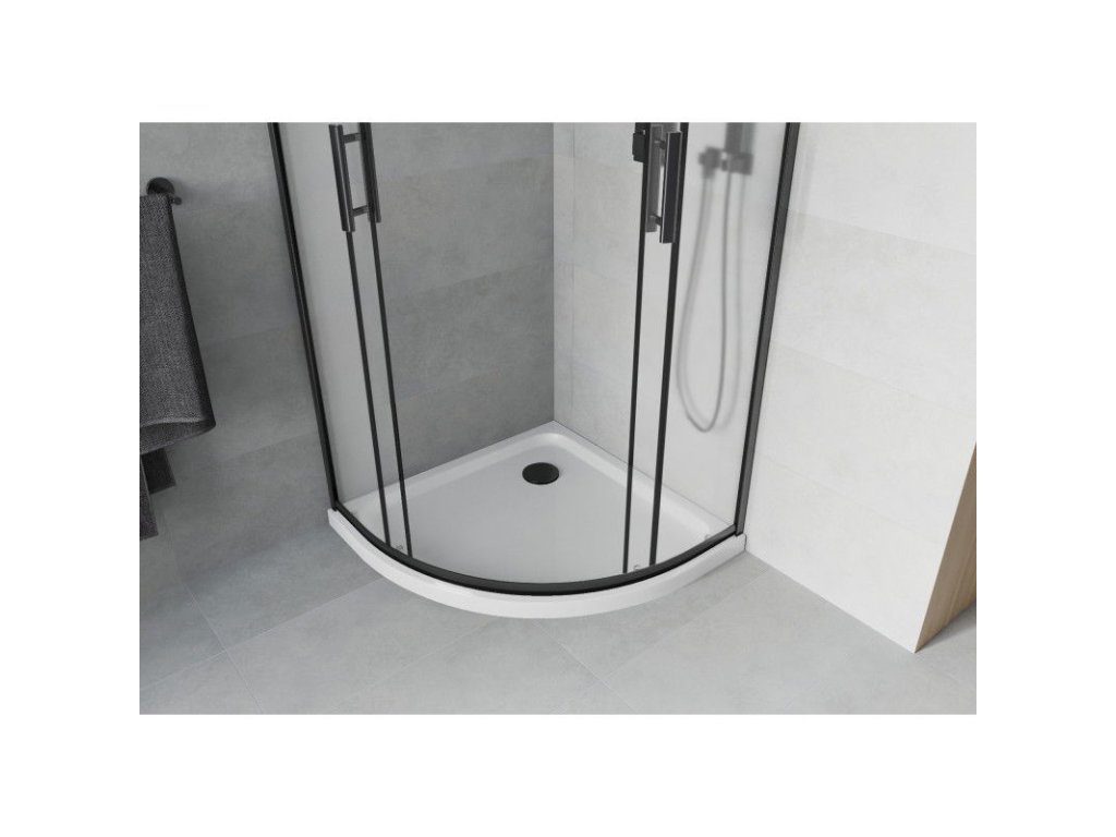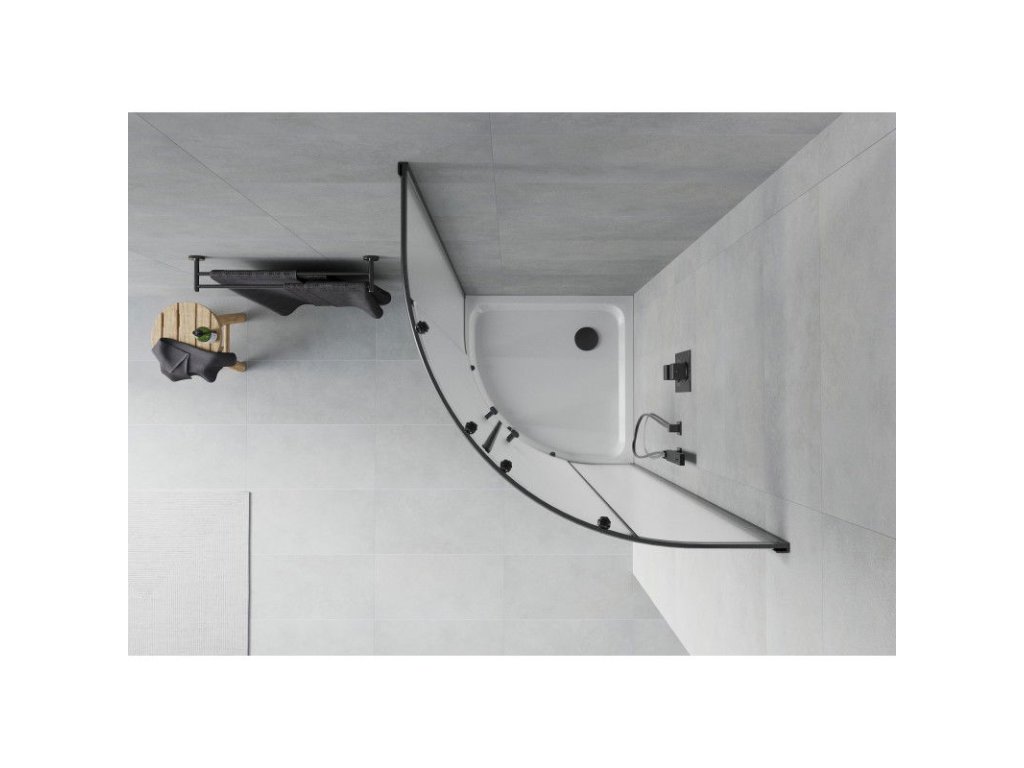 Mexen Rio sprchový kút štvrťkruhový 90 x 90 cm, námraza, profil čierny + sprchová vanička Flat, biela - 863-090-090-70-30-4110B