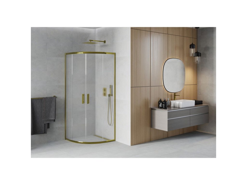 Technické údaje: rozmery: 90x90 cm výška: 190 cm montáž: univerzálna Ľ+P vstup: posuvné dvere farba skla: námraza povrchová úprava: zlatá lesklá typ skla: tvrdené - bezpečnostné hrúbka skla: 5 mm profil: hliník povlak pre ľahké čistenie : áno vyrovnanie nerovností steny: áno nastavenie šírky: áno montáž na dlažbu alebo sprchovú vaničku: áno kovová rukoväť sada tesnení na odvod vody hliníkový prah dveríDodatočné parametre