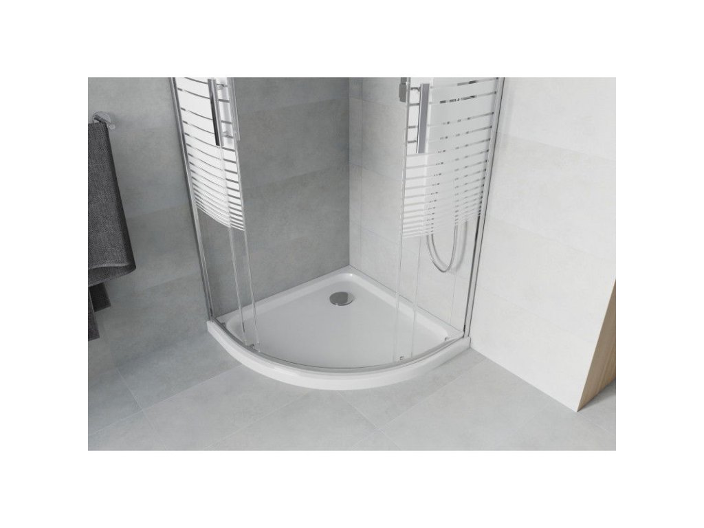 Mexen Rio sprchový kút štvrťkruhový 90 x 90 cm, pásy, profil chróm + sprchová vanička Flat, biela - 863-090-090-01-20-4110