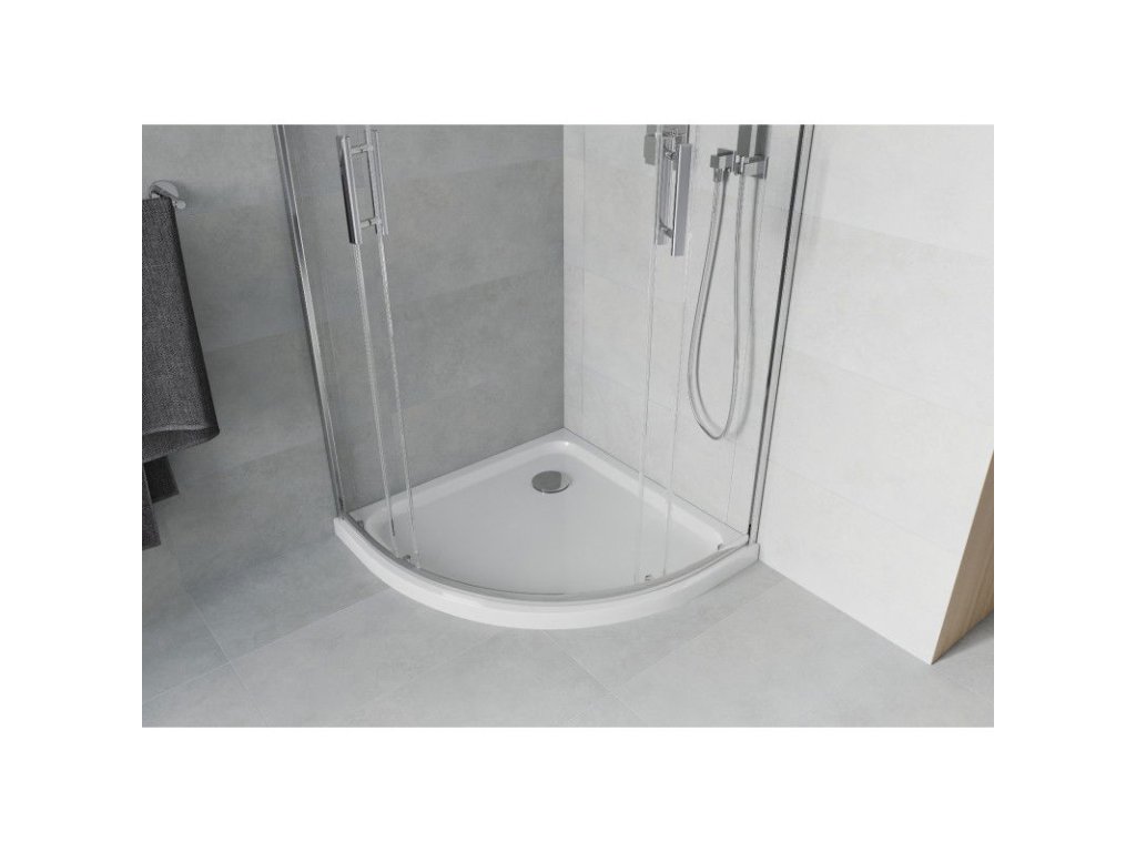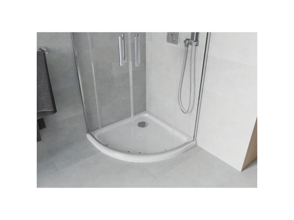 Mexen Rio sprchový kút štvrťkruhový 90 x 90 cm, priehľadné sklo, profil chróm + sprchová vanička Flat, biela - 863-090-090-01-00-4110