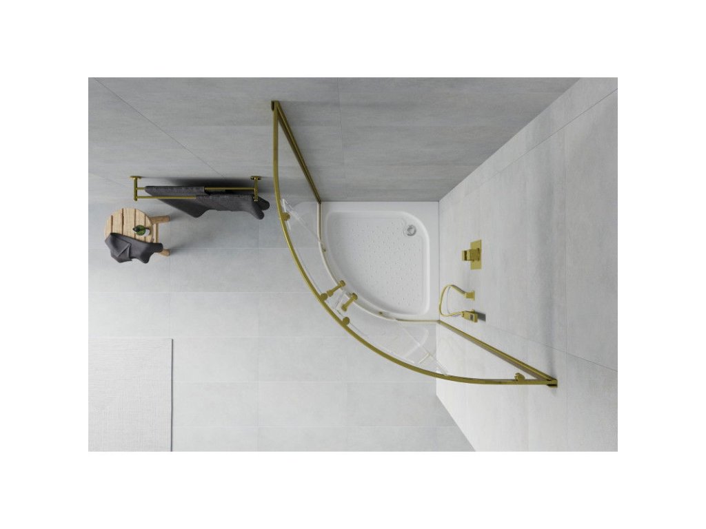 Mexen Rio sprchový kút štvrťkruhový 90 x 90 cm, priehľadné sklo, profil zlatý + sprchová vanička Rio, biela - 863-090-090-50-00-4710