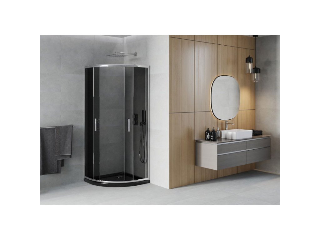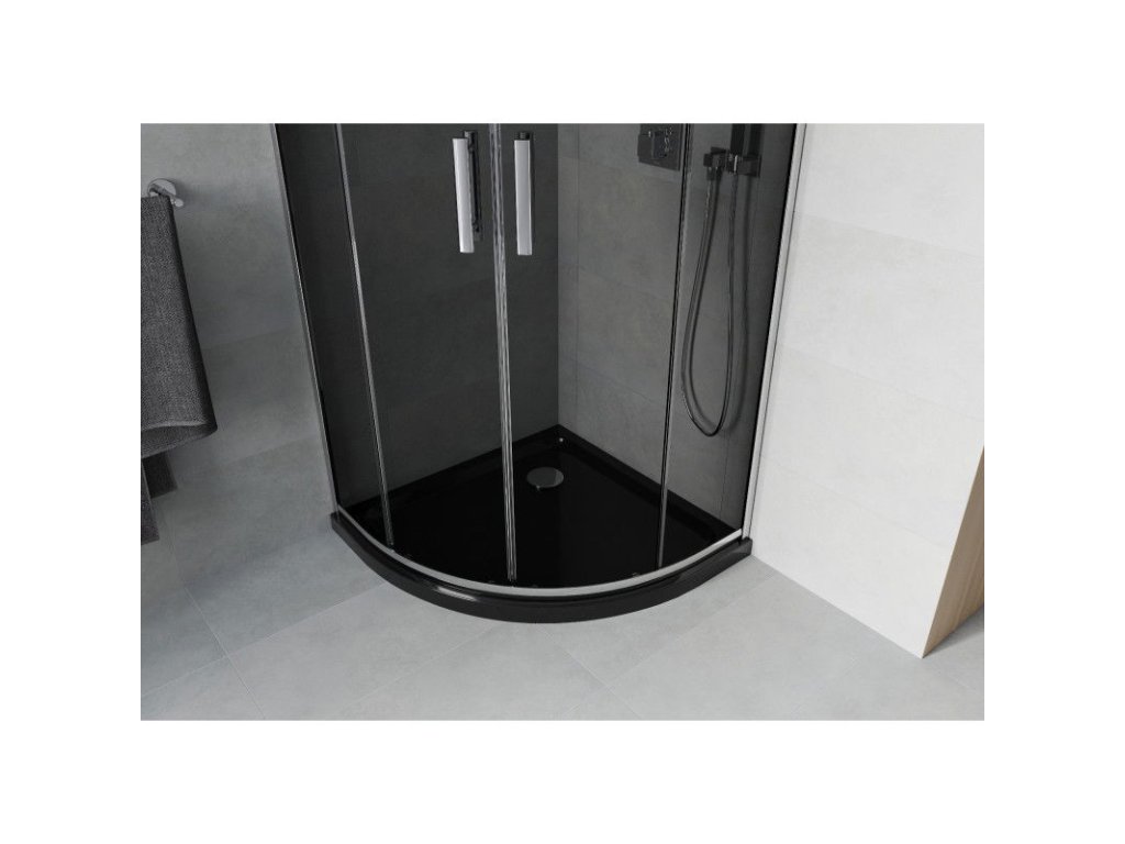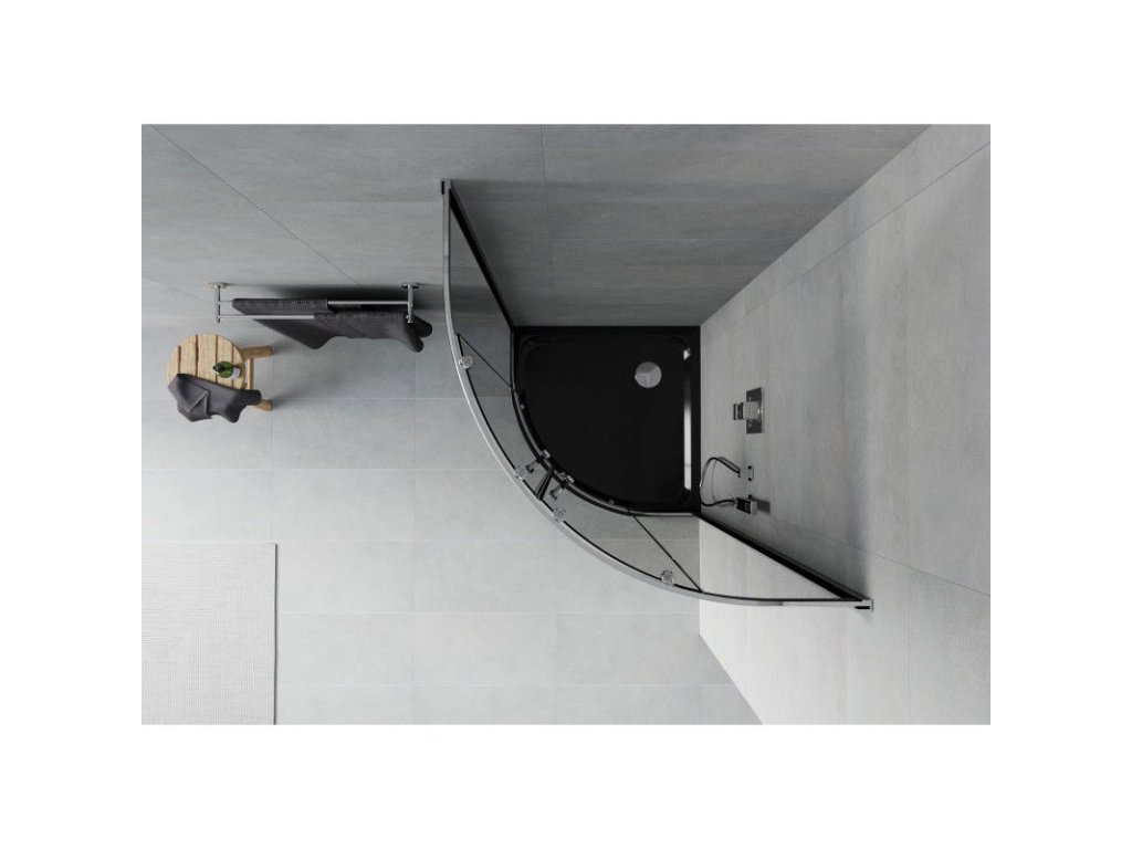 Mexen Rio sprchový kút štvrťkruhový 90 x 90 cm, šedé sklo, profil chróm + sprchová vanička Flat, čierna - 863-090-090-01-40-4170