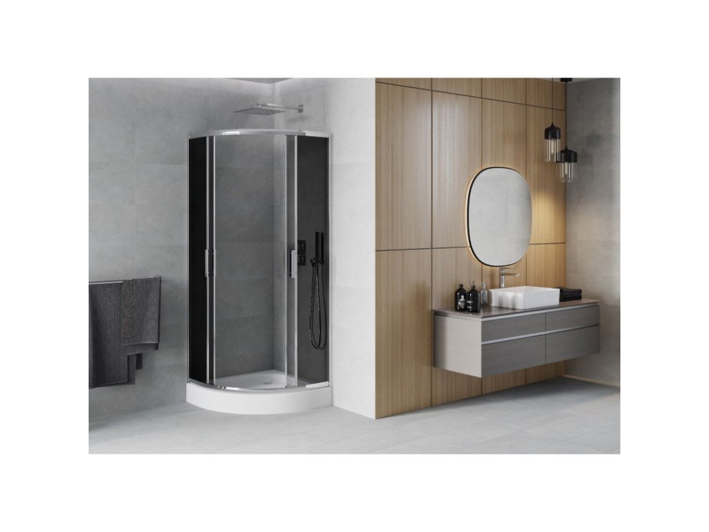 Mexen Rio sprchový kút štvrťkruhový 90 x 90 cm, šedé sklo, profil chróm + sprchová vanička Rio, biela - 863-090-090-01-40-4710