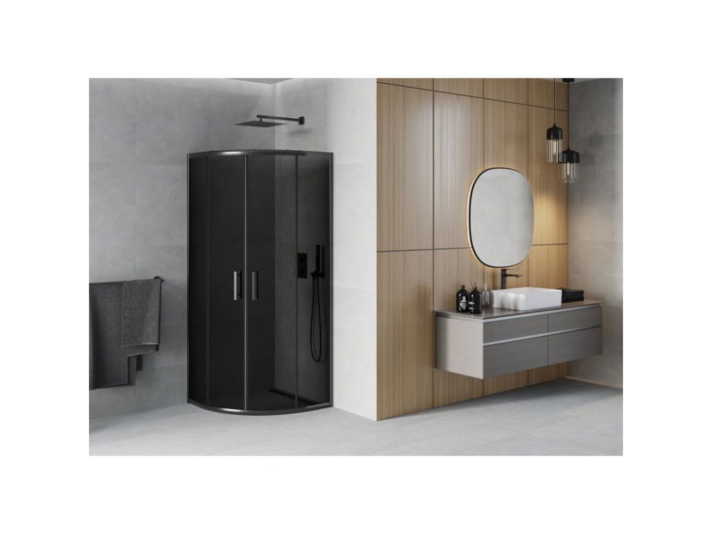 Mexen Rio sprchový kút štvrťkruhový 90 x 90 cm, šedé sklo, profil čierny - 863-090-090-70-40