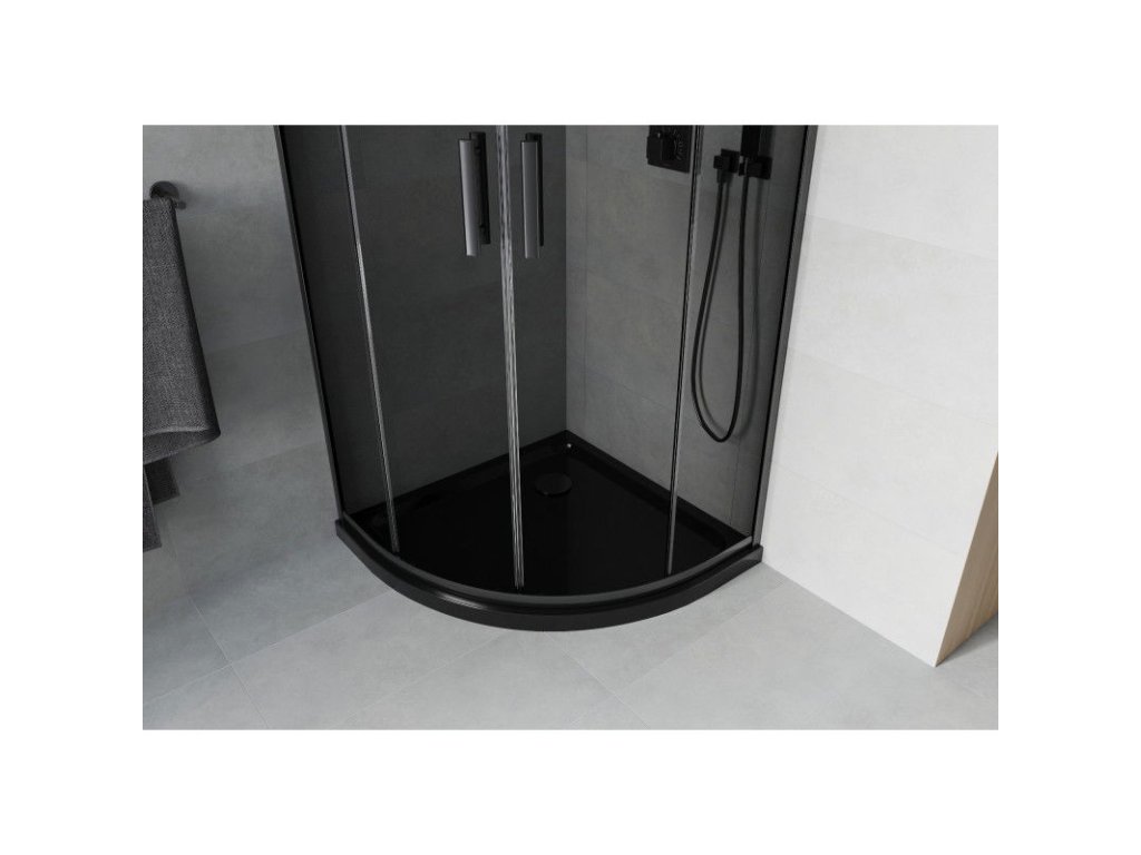 Mexen Rio sprchový kút štvrťkruhový 90 x 90 cm, šedé sklo, profil čierny + sprchová vanička Flat, čierna - 863-090-090-70-40-4170B