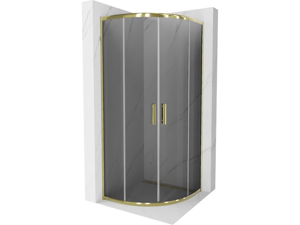 Mexen Rio sprchový kút štvrťkruhový 90 x 90 cm, šedé sklo, profil zlatý - 863-090-090-50-40