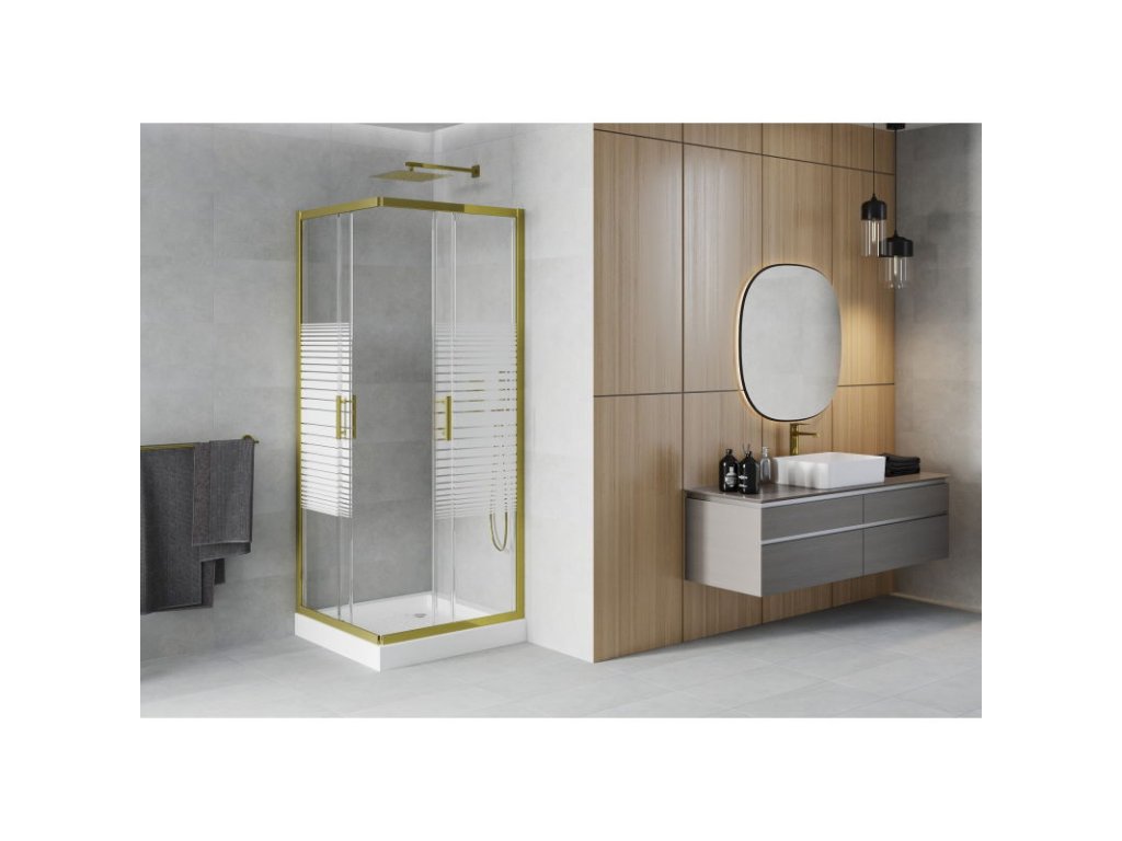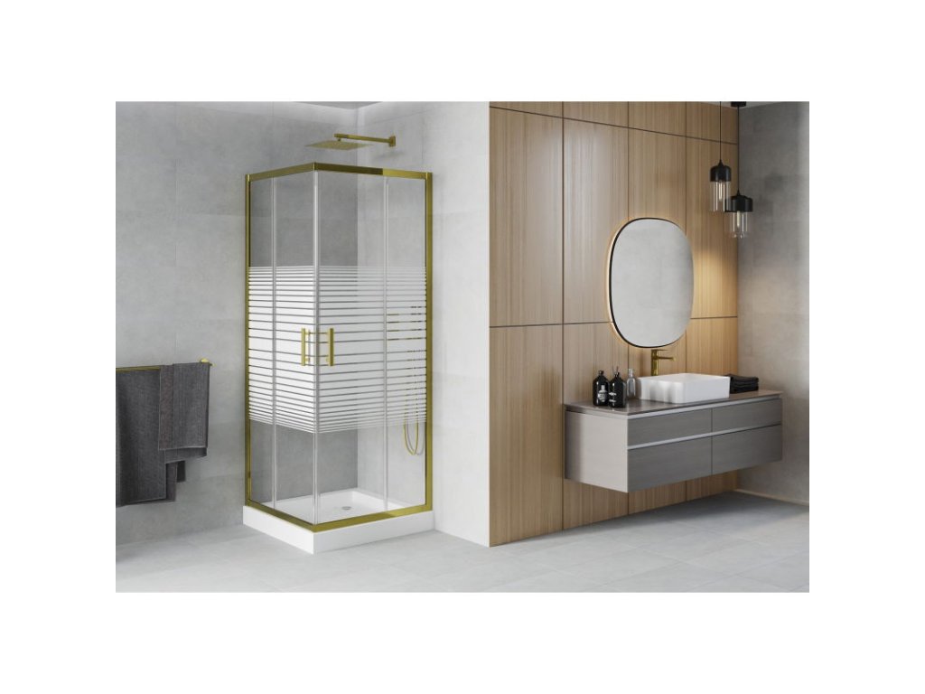 Mexen Rio štvorcový sprchový kút 70 x 70 cm, pruhovaný, zlatý + Rio sprchová vanička, biela - 860-070-070-50-20-4510