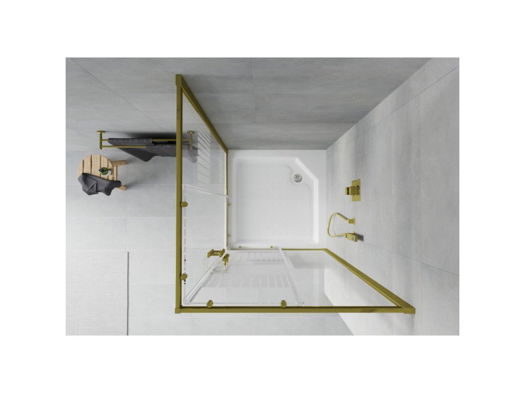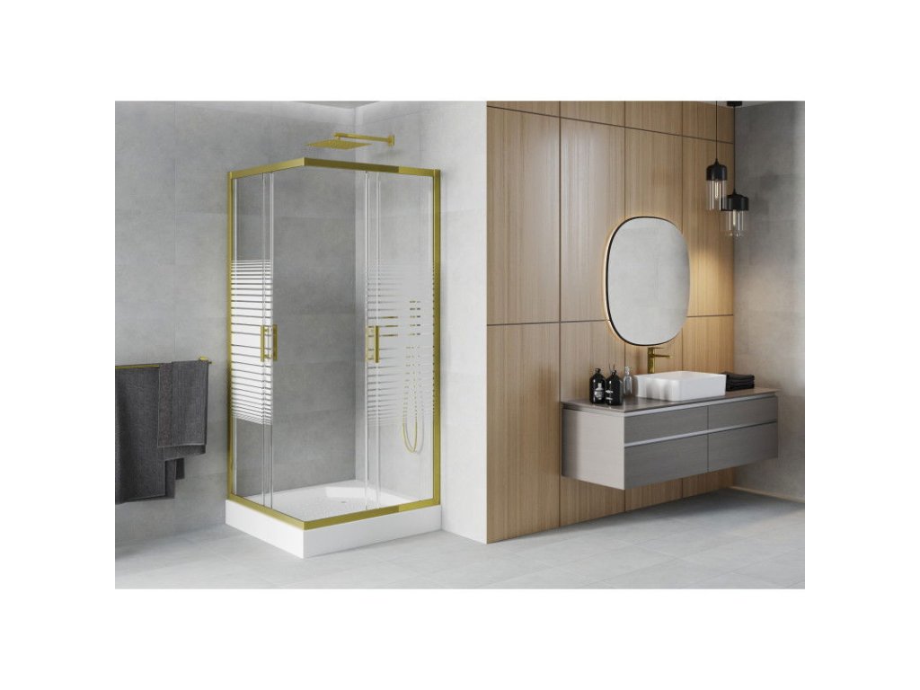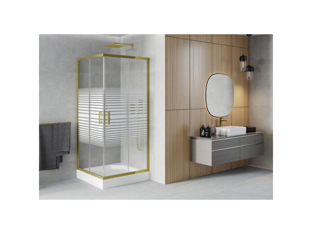 Mexen Rio štvorcový sprchový kút 90 x 90 cm, pruhovaný, zlatý + Rio sprchová vanička, biela - 860-090-090-50-20-4510