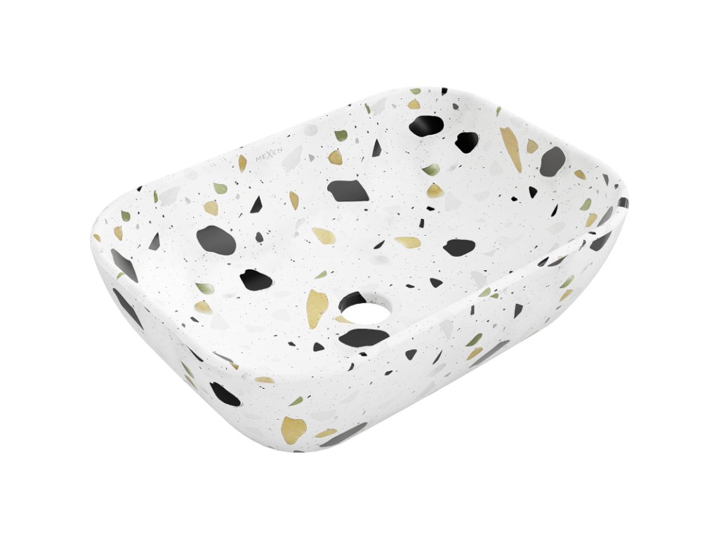 Mexen Rita umývadlo na dosku 45 x 32 cm, biely kameň terrazo - 21084587