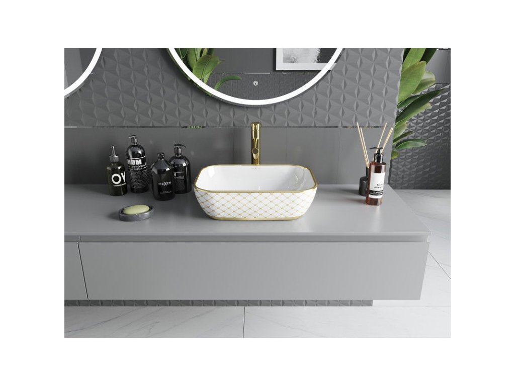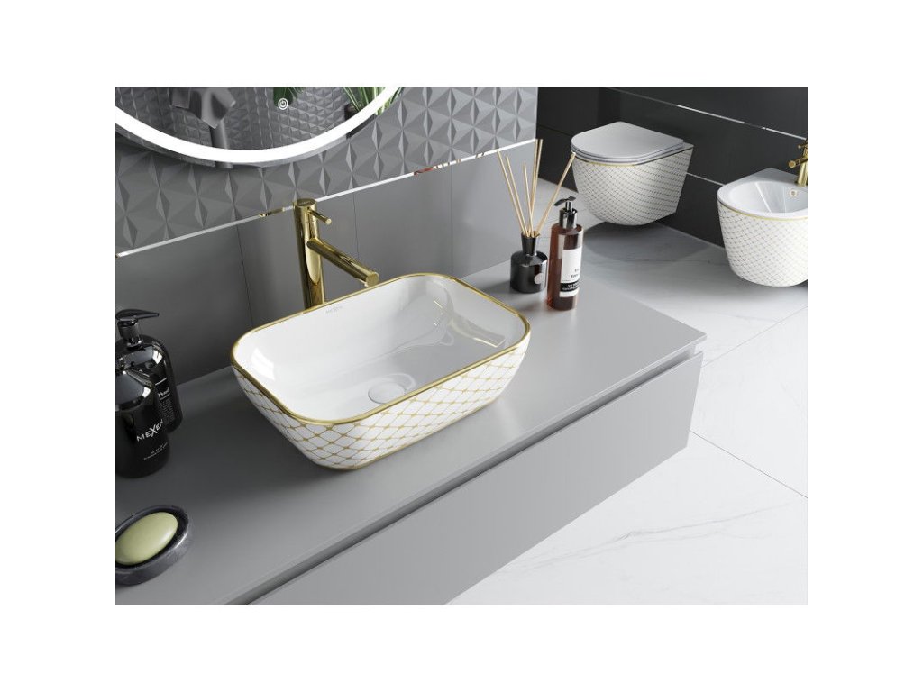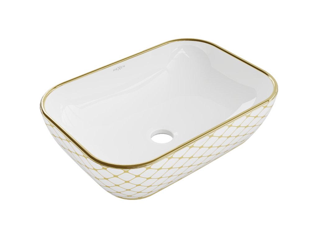 Mexen Rita umývadlo na dosku 45 x 32 cm, biely/zlatý mriežkový vzor - 21084509