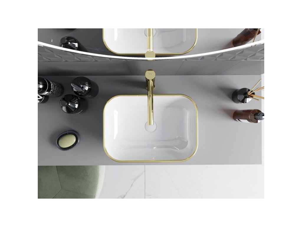 Umývadlo na dosku Mexen Rita je elegantným doplnkom každej kúpeľne. Ponúka minimalistický dizajn v bielej farbe so zlatým mriežkovým vzorom, ktorý mu dodáva jemný a štýlový dojem. Vďaka svojim rozmerom (45,5 x 32,5 x 13,5 cm) a hĺbke 11,5 cm je funkčné a praktické. Je vyrobená zo sanitárnej keramiky, je odolná a ľahko sa čistí. Výrobok nevyžaduje otvor na prepad ani otvor na vodovodný kohútik, čo zaručuje prispôsobenie rôznym dizajnovým štýlom. Je ideálnou voľbou pre tých, ktorí oceňujú moderný dizajn.Diskusia