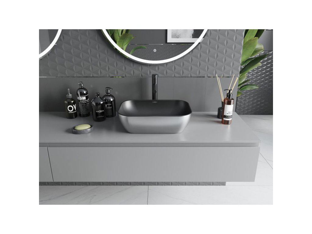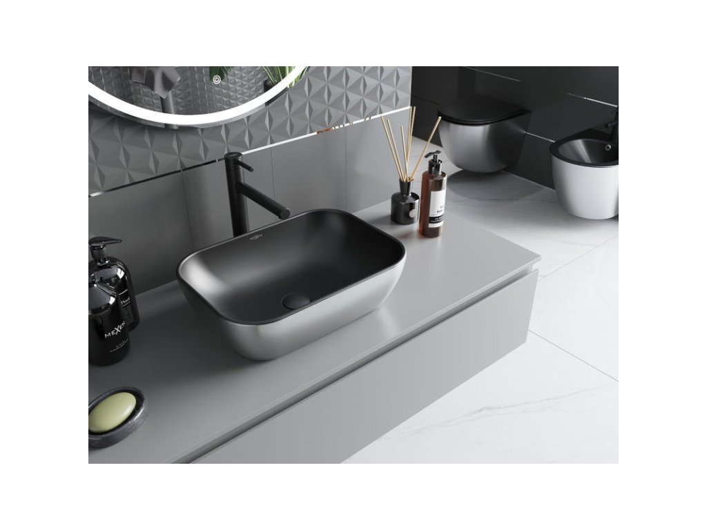 Mexen Rita umývadlo na dosku 45 x 32 cm, čierna matná/strieborná - 21084574