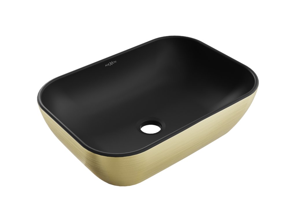 Mexen Rita umývadlo na dosku 45 x 32 cm, čierny matný vzor/zlatá linka - 21084577