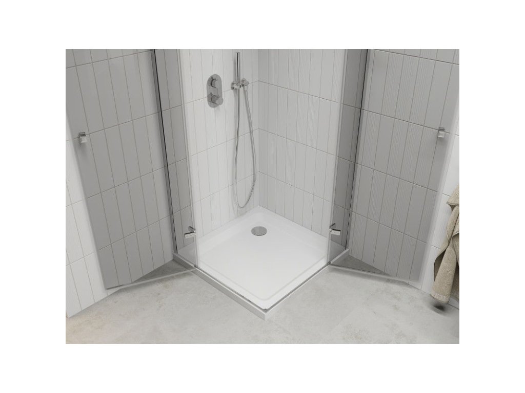 Mexen Roma Duo sprchový kút skladací 70 x 70 cm, priehľadné sklo, profil chróm + sprchová vanička Flat - 854-070-070-01-02-4010