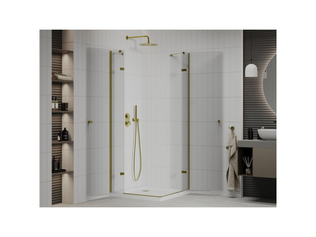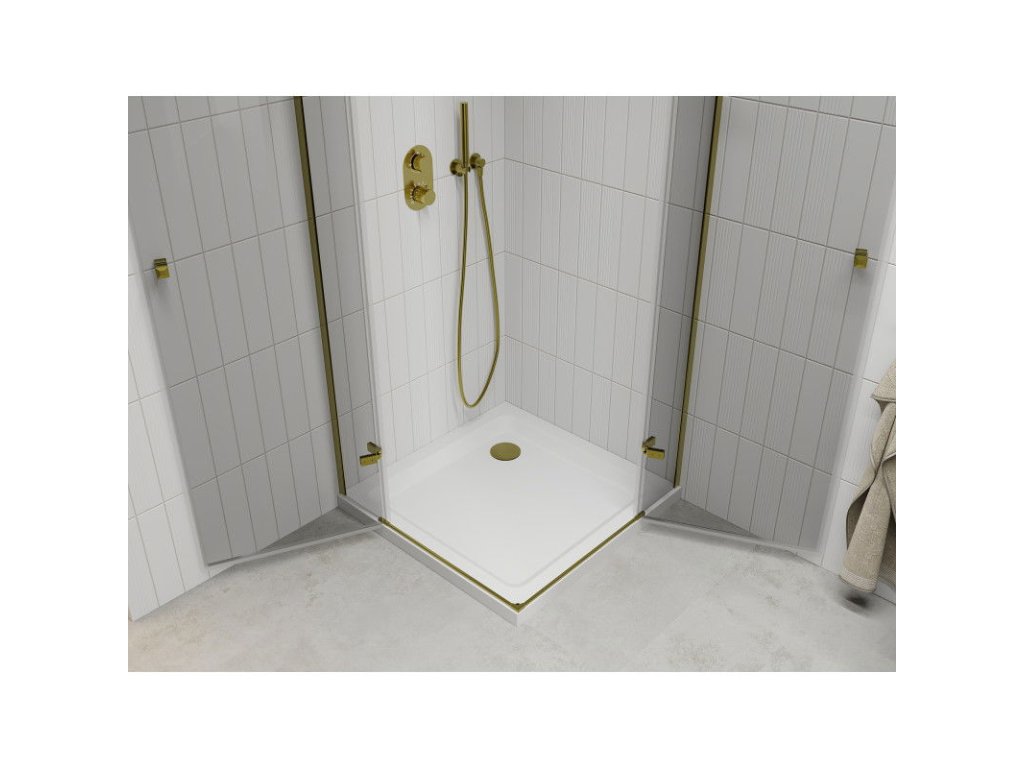 Mexen Roma Duo sprchový kút skladací 70 x 70 cm, priehľadné sklo, profil zlatý+ sprchová vanička Flat - 854-070-070-50-02-4010G