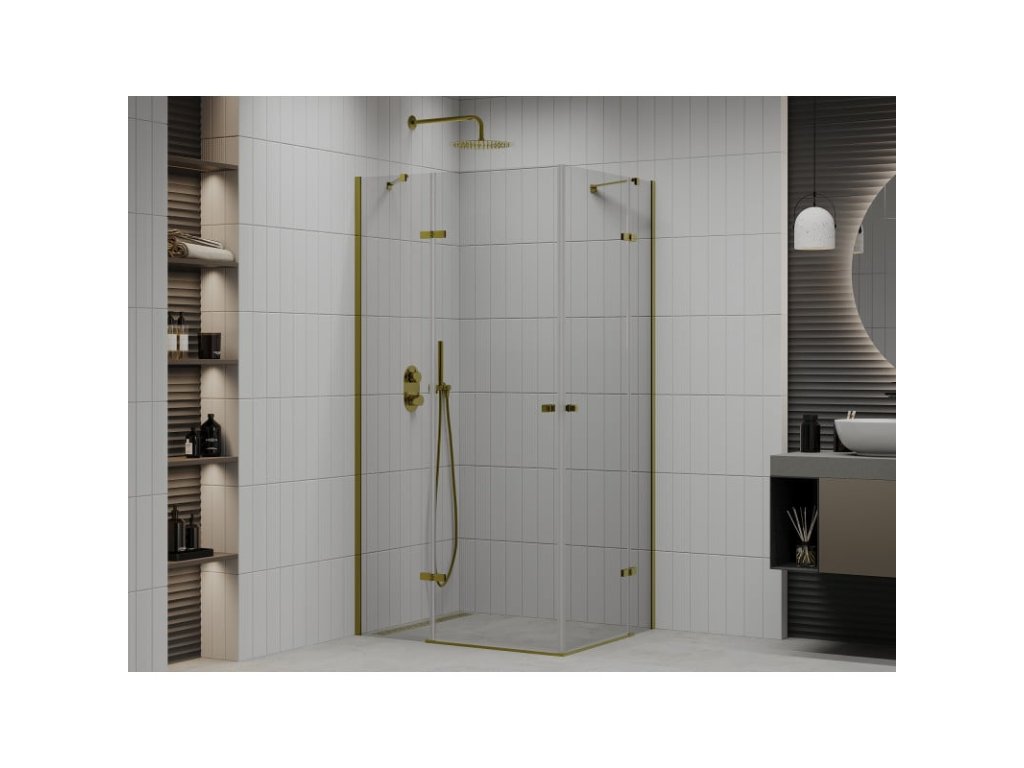 Mexen Roma Duo sprchový kút skladací 80 x 70 cm, priehľadné sklo, profil zlatý- 854-080-070-50-00-02