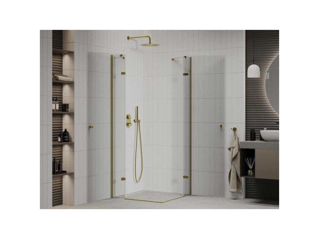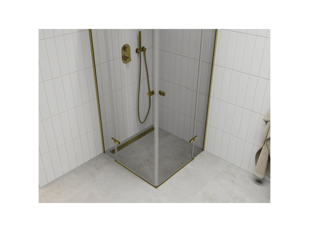 Mexen Roma Duo sprchový kút skladací 80 x 80 cm, priehľadné sklo, profil zlatý- 854-080-080-50-00-02