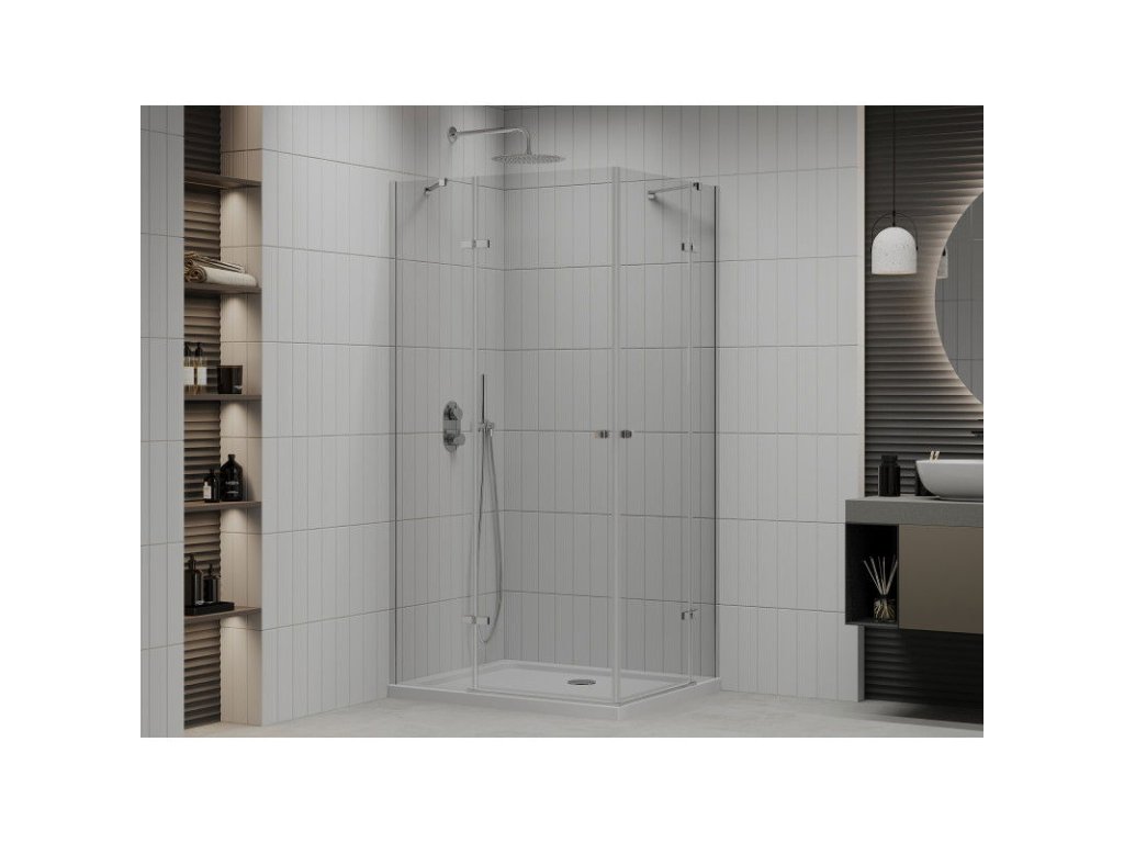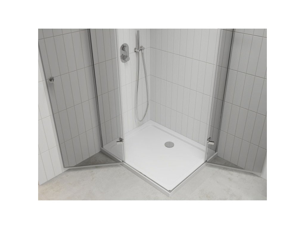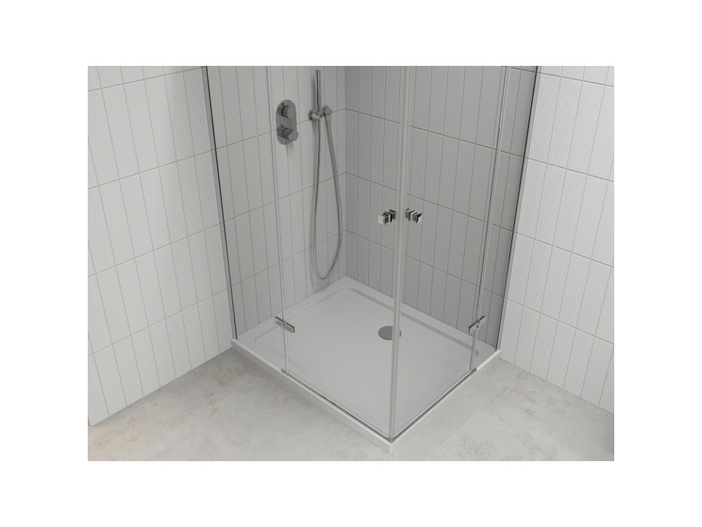 Mexen Roma Duo sprchový kút skladací 90 x 80 cm, priehľadné sklo, profil chróm + sprchová vanička Flat - 854-090-080-01-02-4010