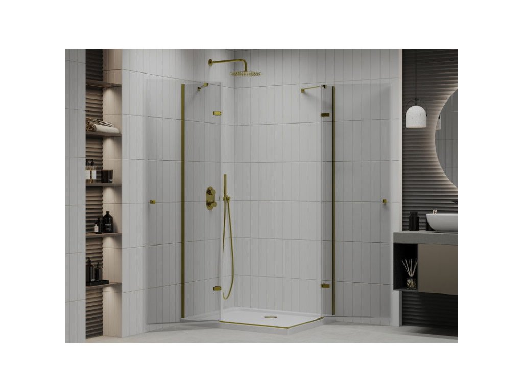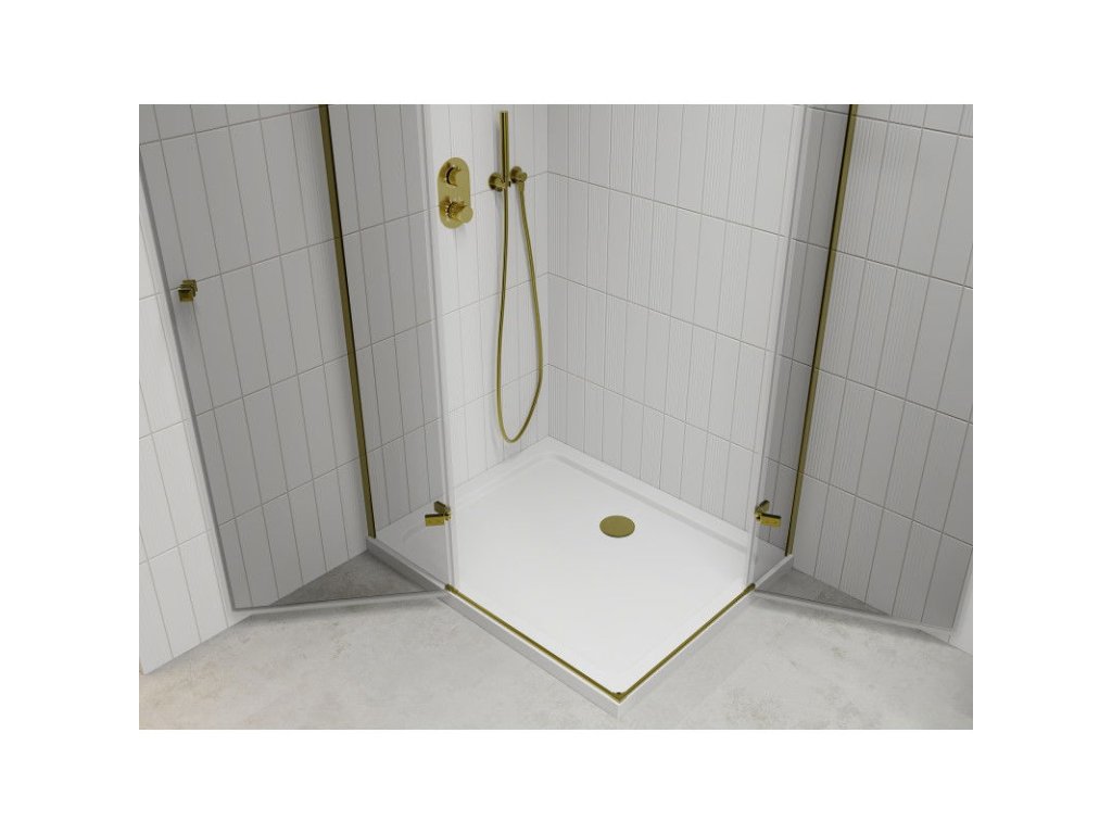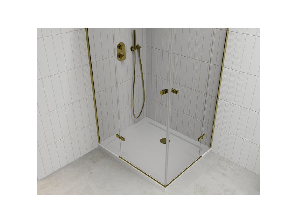 Mexen Roma Duo sprchový kút skladací 90 x 80 cm, priehľadné sklo, profil zlatý+ sprchová vanička Flat - 854-090-080-50-02-4010G