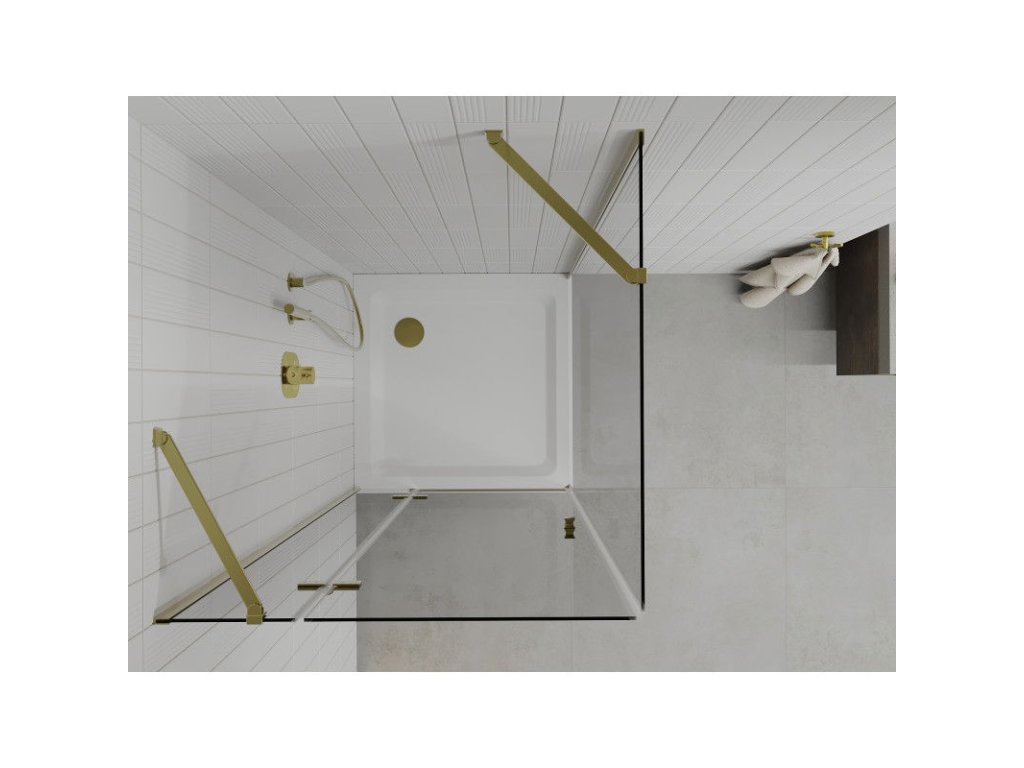 Mexen Roma sprchový kút skladací 100 x 100 cm, priehľadné sklo, profil zlatý + sprchová vanička Flat - 854-100-100-50-00-4010