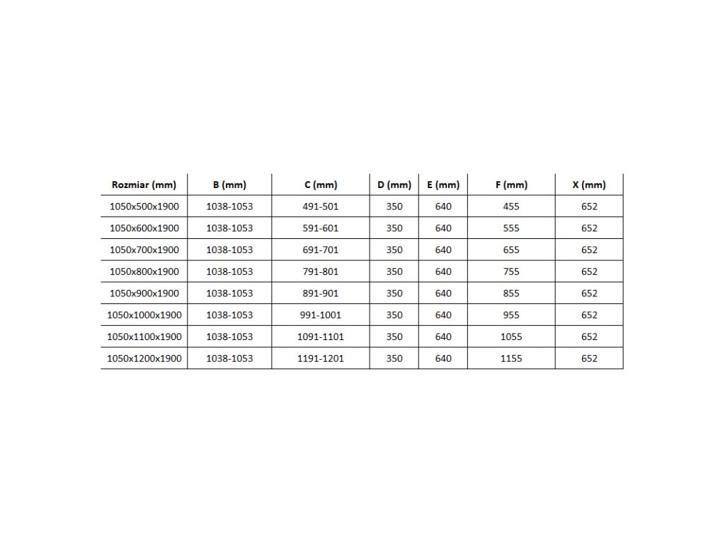 rozmery: 105x100 cm (dvere 105 cm, fixná stena 100 cm)