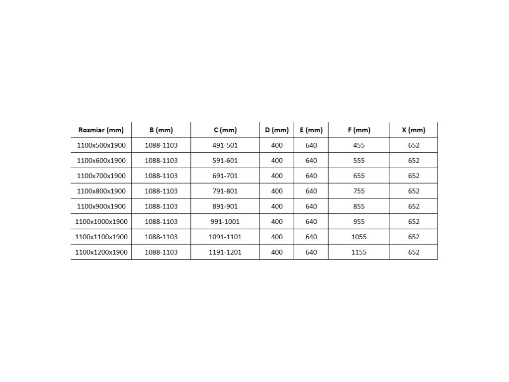 rozmery: 110x70 cm (dvere 110 cm, fixná stena 70 cm)