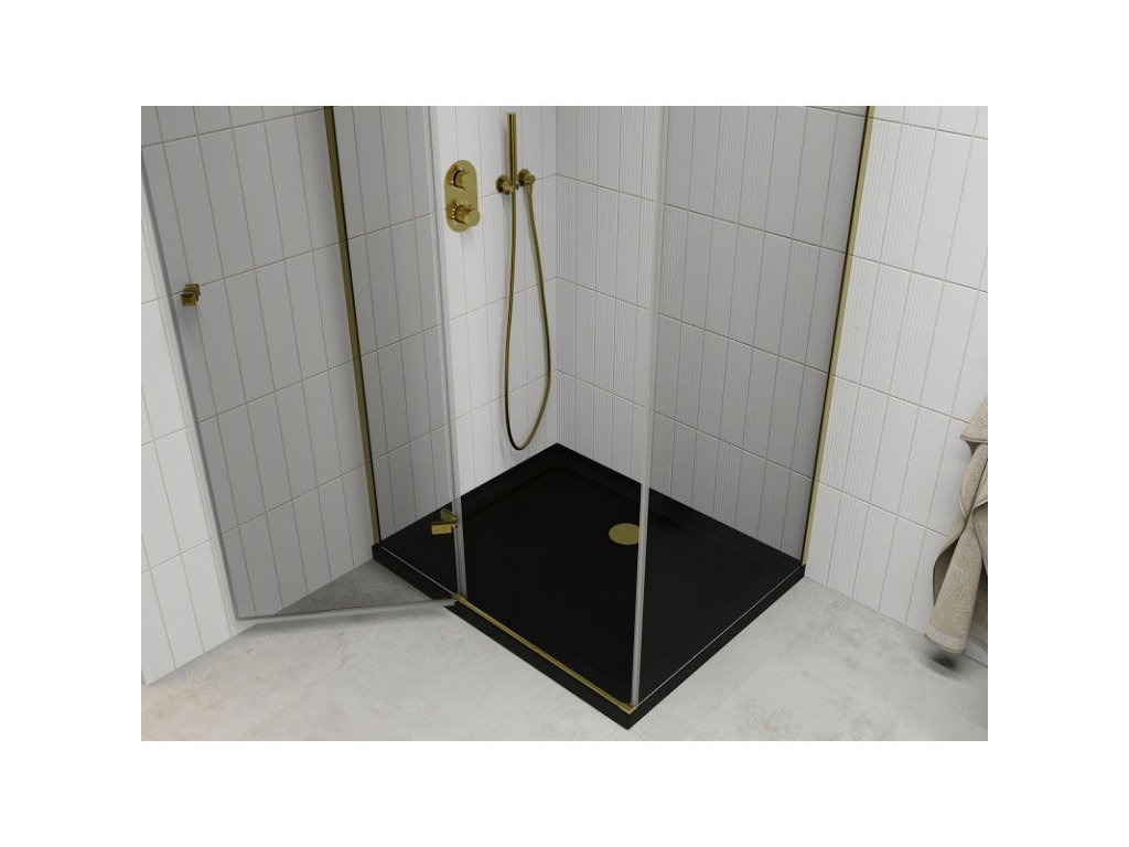 Mexen Roma sprchový kút skladací 120 x 80 cm, priehľadné sklo, profil zlatý + sprchová vanička Flat, čierna - 854-120-080-50-00-4070G