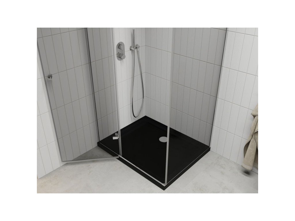 Mexen Roma sprchový kút skladací 120 x 90 cm, priehľadné sklo, profil chróm + sprchová vanička Flat, čierna - 854-120-090-01-00-4070