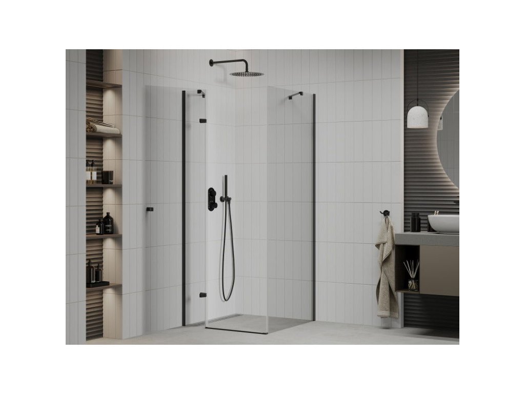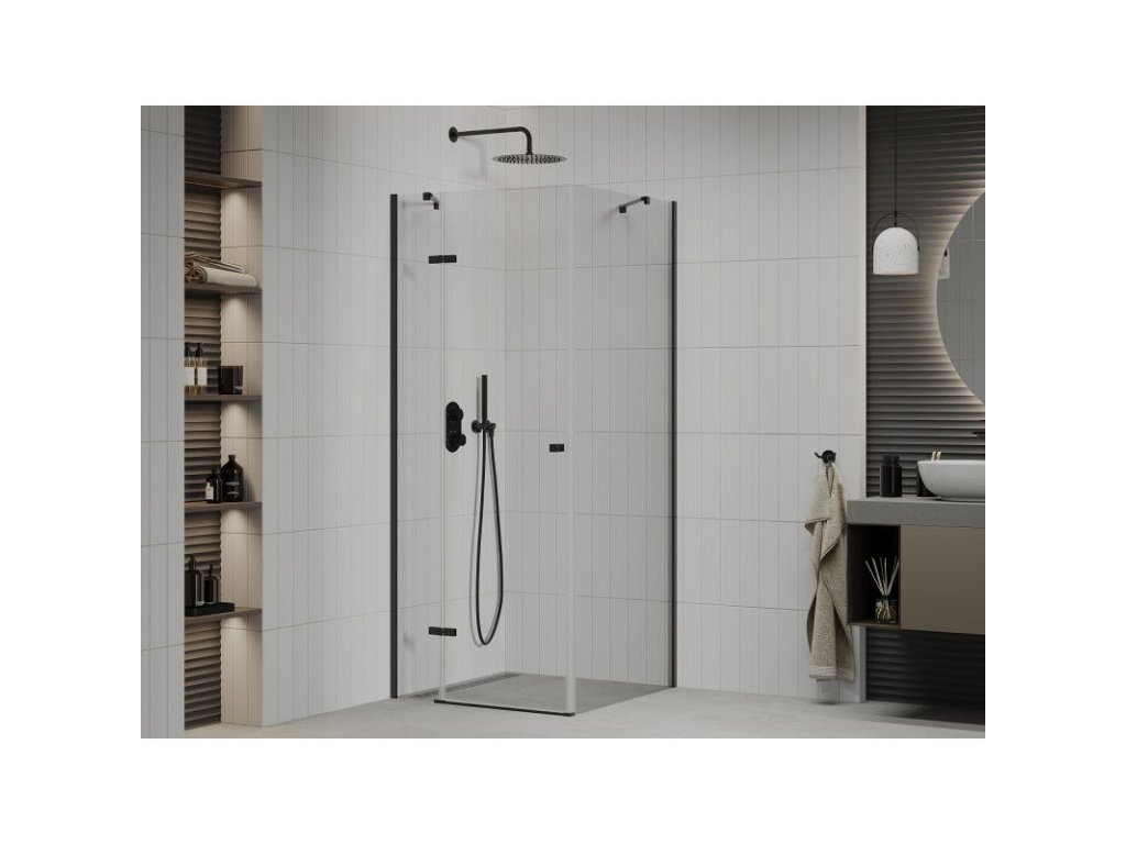 Mexen Roma sprchový kút skladací 70 x 70 cm, priehľadné sklo, profil čierny - 854-070-070-70-00