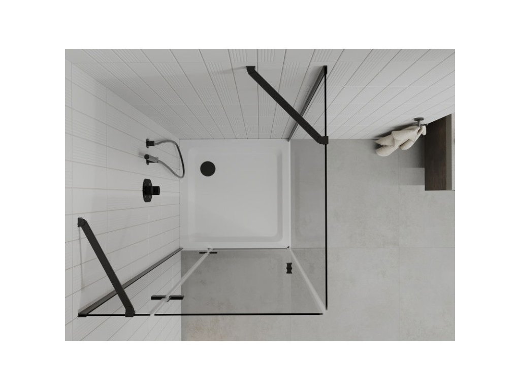 Mexen Roma sprchový kút skladací 70 x 70 cm, priehľadné sklo, profil čierny + sprchová vanička Flat, biela - 854-070-070-70-00-4010B