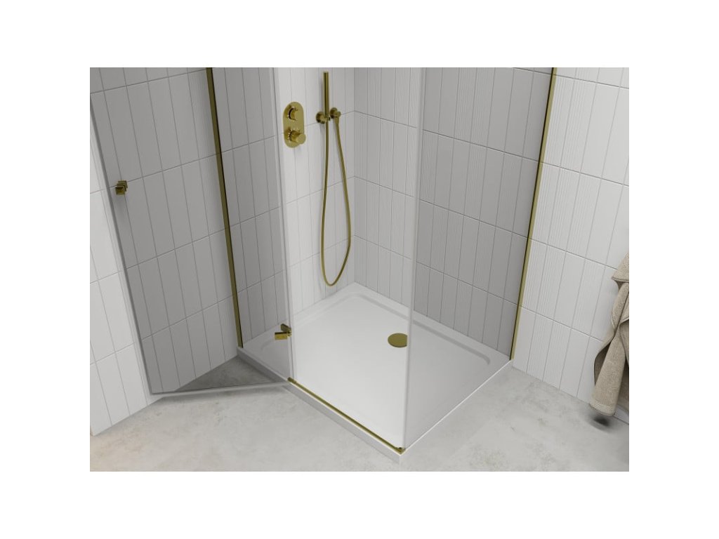 Mexen Roma sprchový kút skladací 70 x 90 cm, priehľadné sklo, profil zlatý + sprchová vanička Flat - 854-070-090-50-00-4010