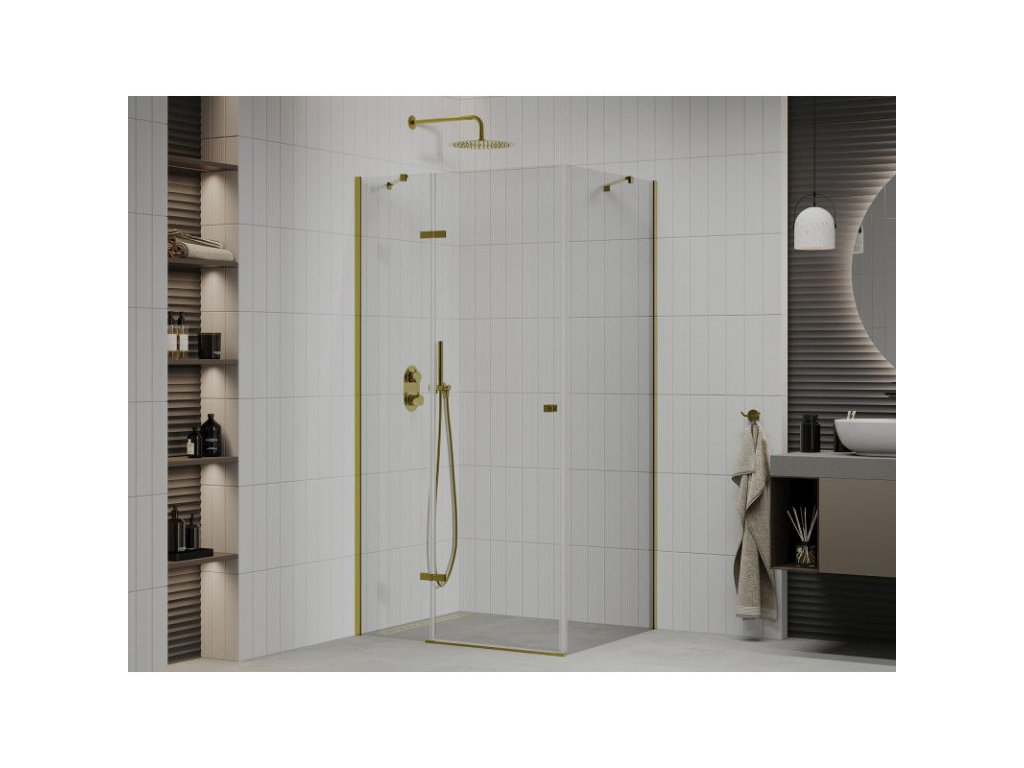 Mexen Roma sprchový kút skladací 80 x 100 cm, priehľadné sklo, profil zlatý - 854-080-100-50-00