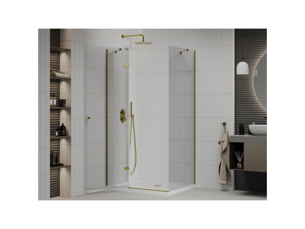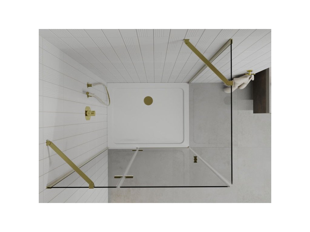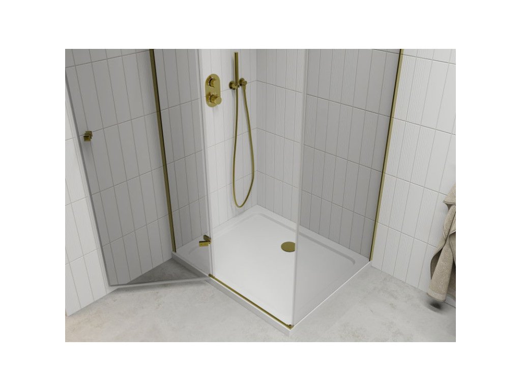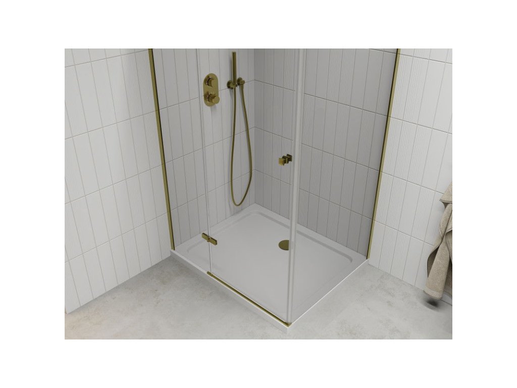 Mexen Roma sprchový kút skladací 80 x 100 cm, priehľadné sklo, profil zlatý + sprchová vanička Flat - 854-080-100-50-00-4010