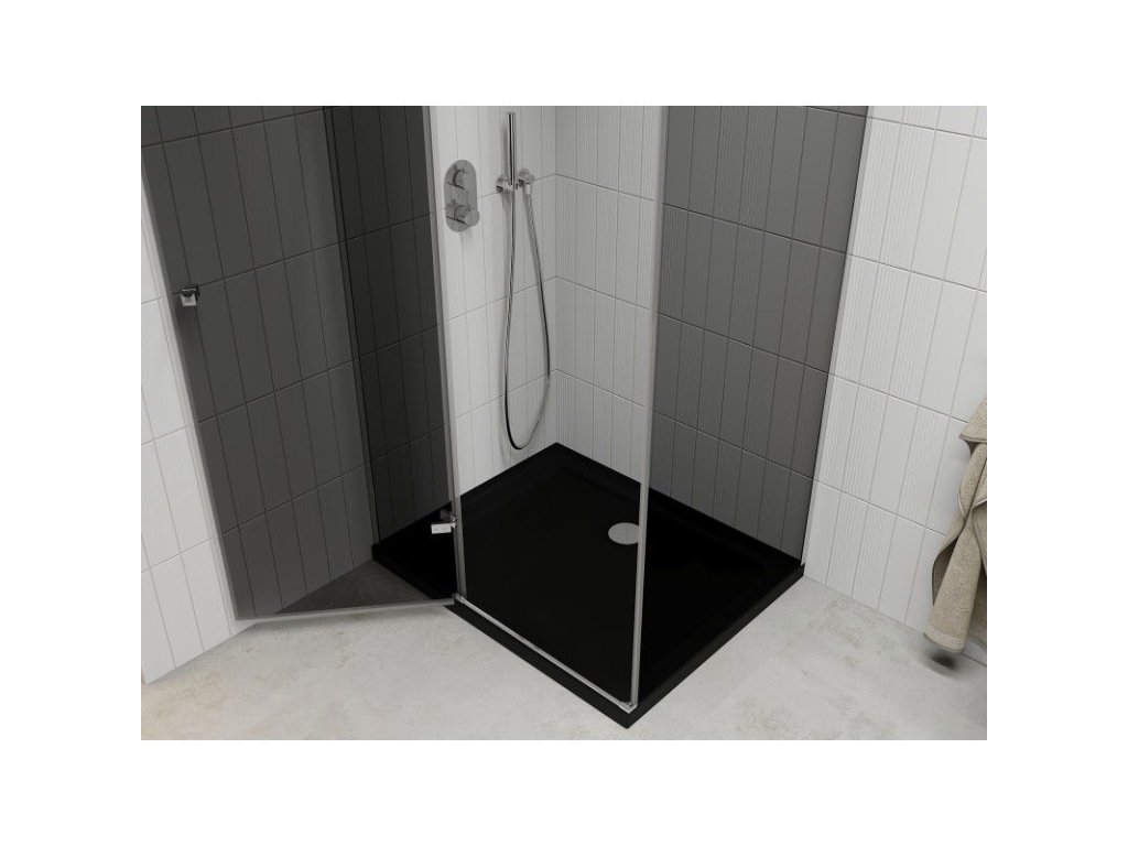 Mexen Roma sprchový kút skladací 80 x 100 cm, šedé sklo, profil chróm + sprchová vanička Flat, čierna - 854-080-100-01-40-4070
