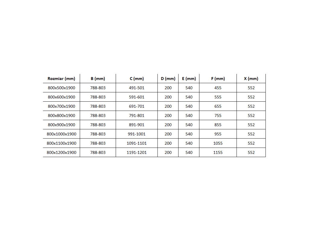 rozmery: 80x110 cm (dvere 80 cm, fixná stena 110 cm)