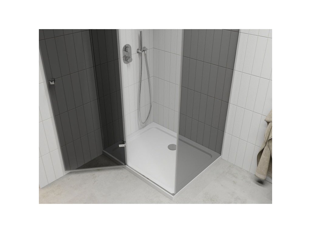 Mexen Roma sprchový kút skladací 80 x 120 cm, šedé sklo, profil chróm + sprchová vanička Flat, biela - 854-080-120-01-40-4010