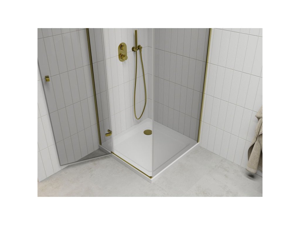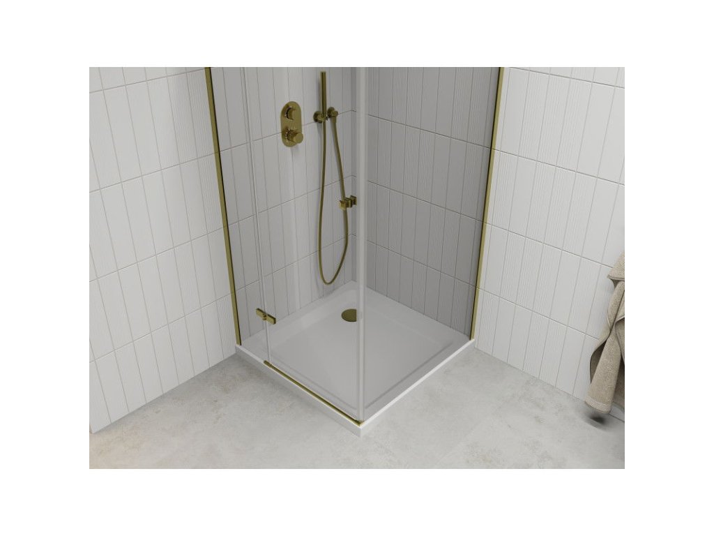 Mexen Roma sprchový kút skladací 80 x 80 cm, priehľadné sklo, profil zlatý + sprchová vanička Flat - 854-080-080-50-00-4010