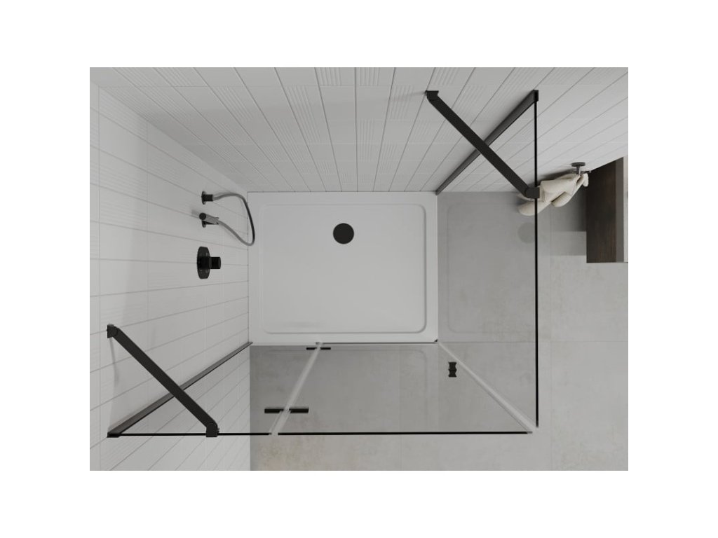 Mexen Roma sprchový kút skladací 90 x 100 cm, priehľadné sklo, profil čierny + sprchová vanička Flat, biela - 854-090-100-70-00-4010B