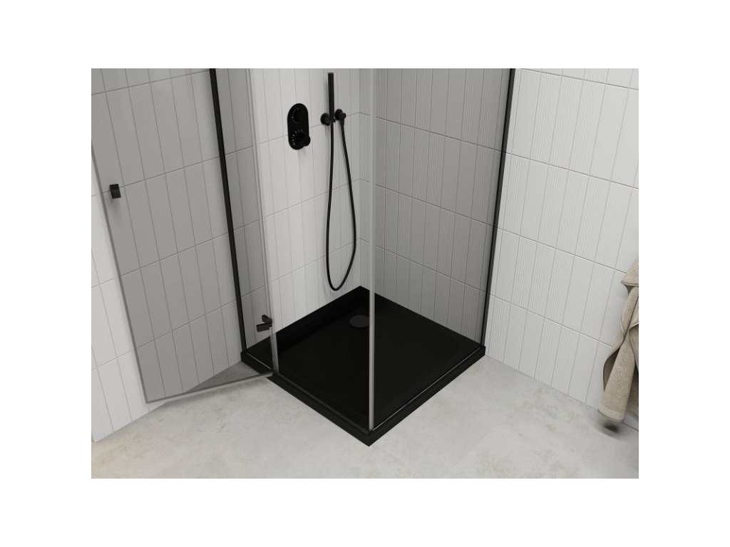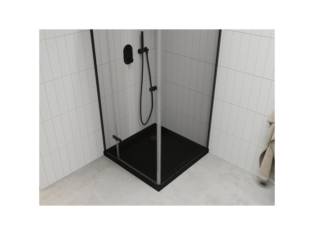 Mexen Roma sprchový kút skladací 90 x 90 cm, priehľadné sklo, profil čierny + sprchová vanička Flat, čierna - 854-090-090-70-00-4070B