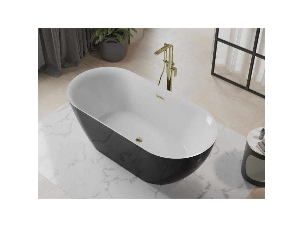 Mexen Roxy voľne stojaca vaňa 170 x 80 cm, biela/čierna, zlatý prepad - 51201708075-50