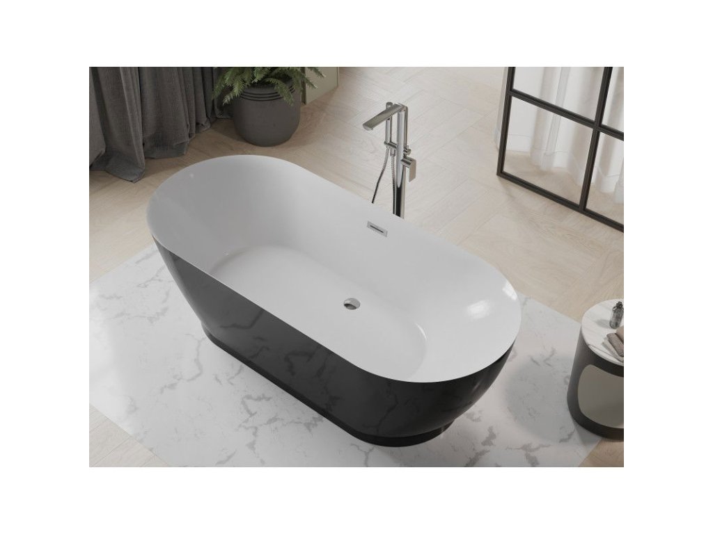 Voľne stojaca vaňa s rozmermi 180 x 85 cm je ideálnym riešením pre vašu kúpeľňu. Je vyrobená zo sanitárneho akrylátu a poskytuje vysokú odolnosť proti zmatneniu a UV žiareniu. Elegantné čierne a biele farby moderného dizajnu v kombinácii s chrómovými detailmi podčiarkujú štýl interiéru. Vďaka oválnemu tvaru a bočnému odtoku je inštalácia veľmi jednoduchá. Súčasťou balenia je sifón a zacvakávacia zátka, vďaka čomu je inštalácia ešte jednoduchšia.Dodatočné parametre